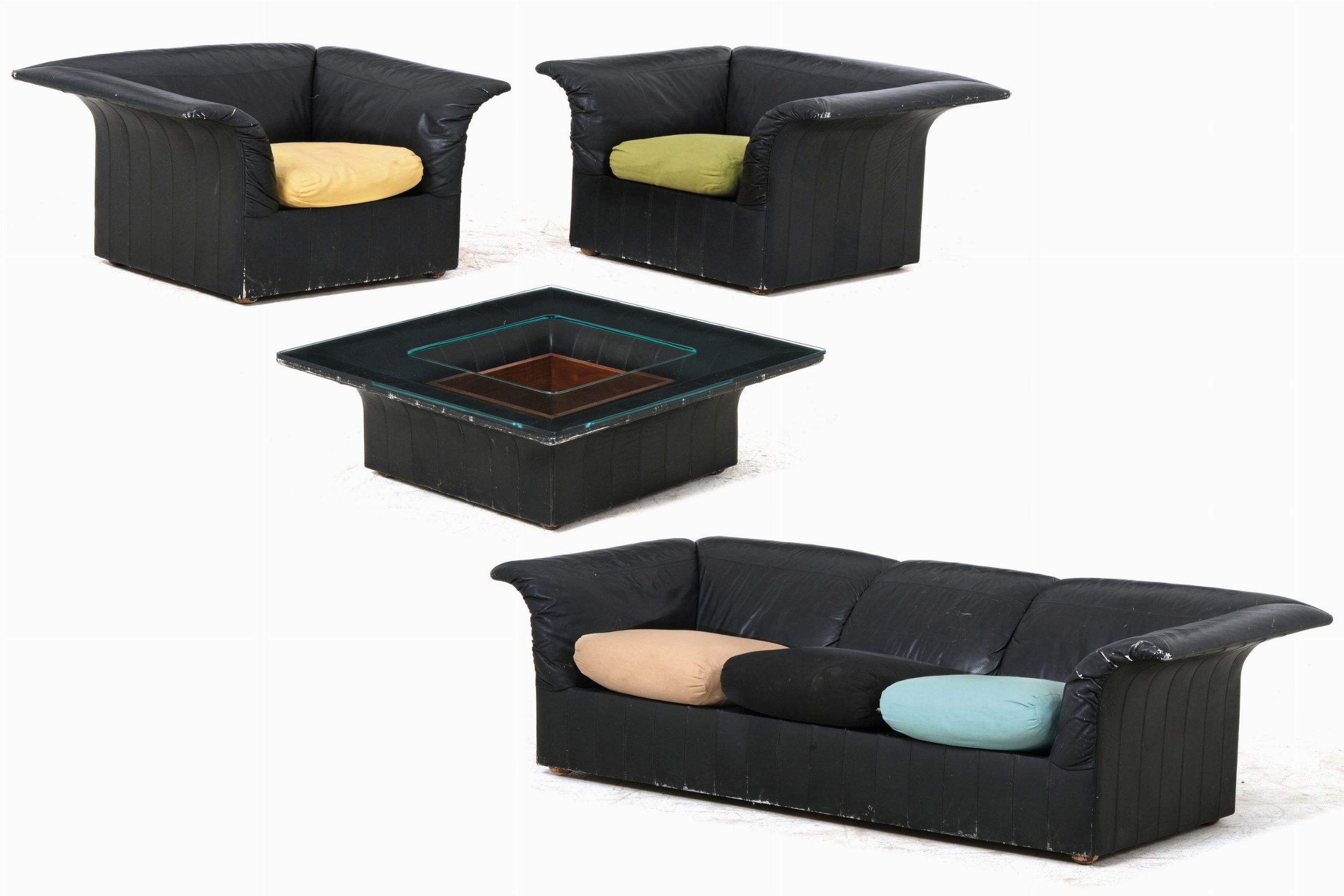 Divano, due poltrone e un tavolo basso. Italia, 1980 ca.
