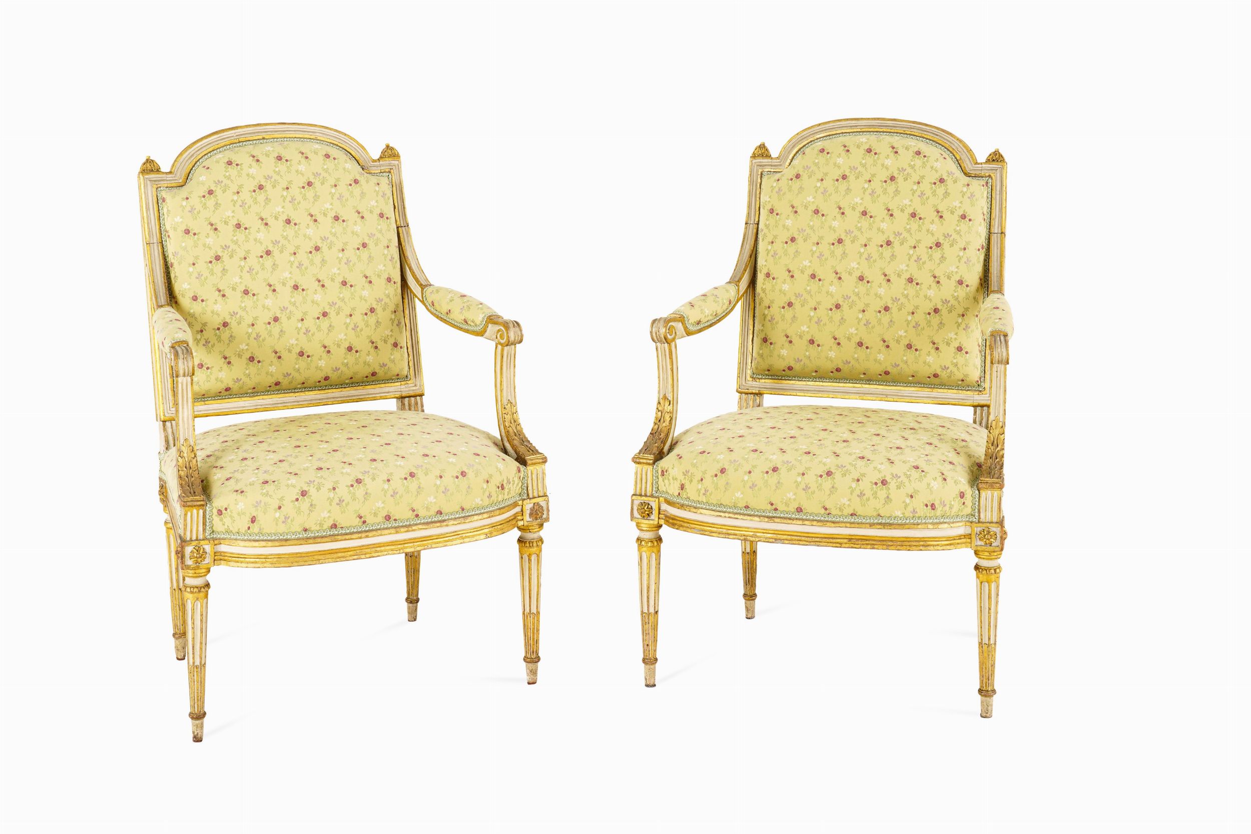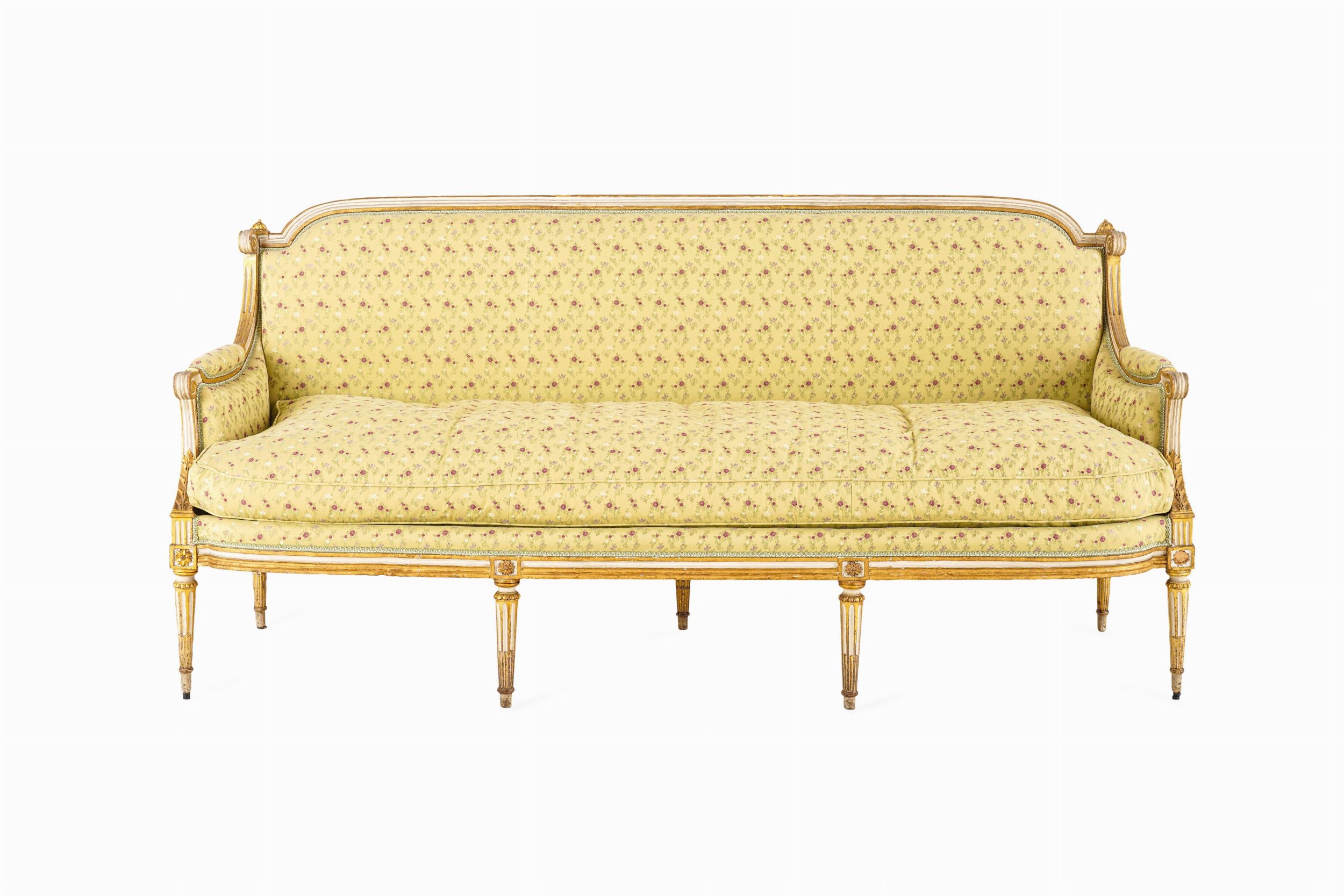 Fornitura da salotto in legno intagliato, laccato e dorato. Francia, XIX secolo