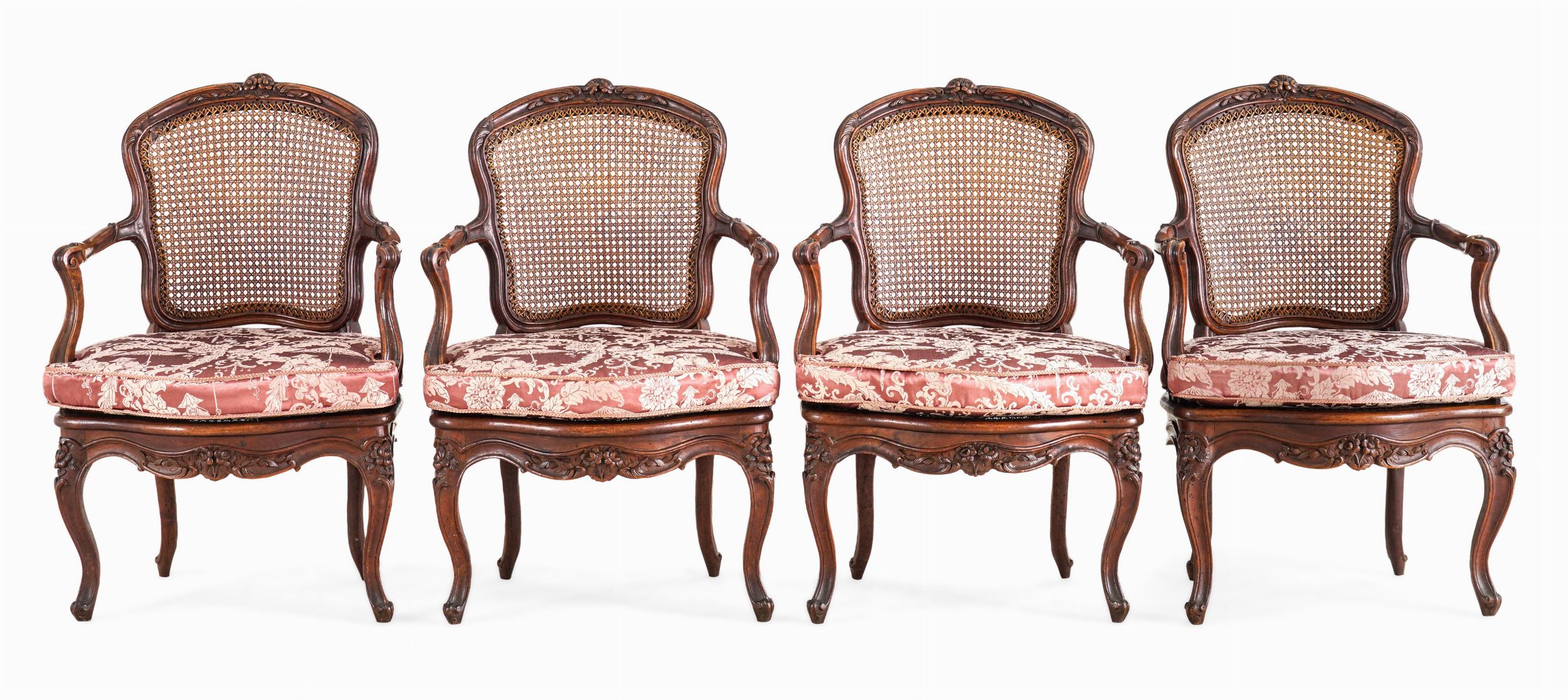 Gruppo di quattro poltrone in legno intagliato. Nogaret à Lyon, Francia, XVIII s [..]