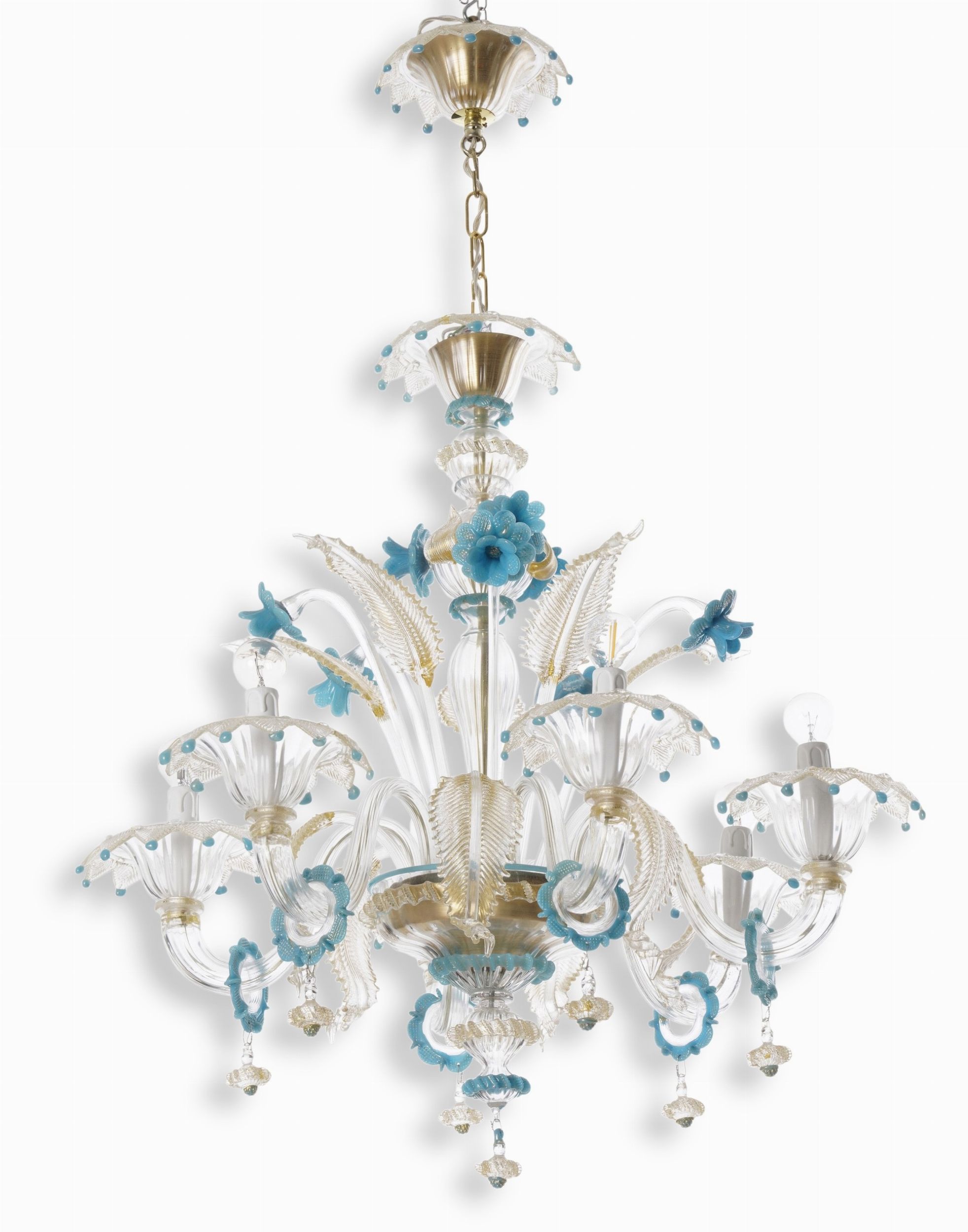 Lampadario in vetro a sei bracci. Murano, XX secolo