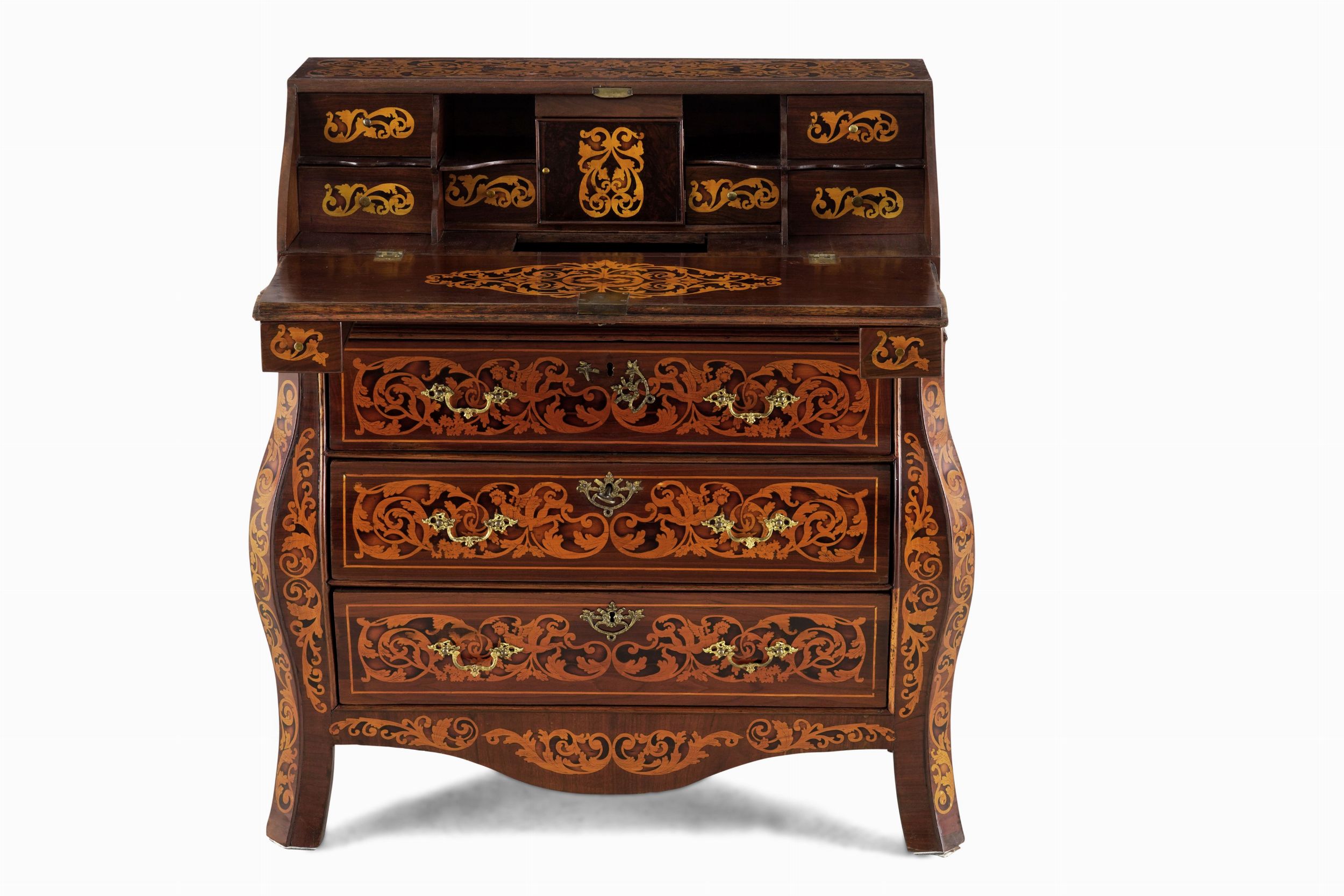 Ribalta lastronata e riccamente intarsiata. Olanda, XIX secolo
