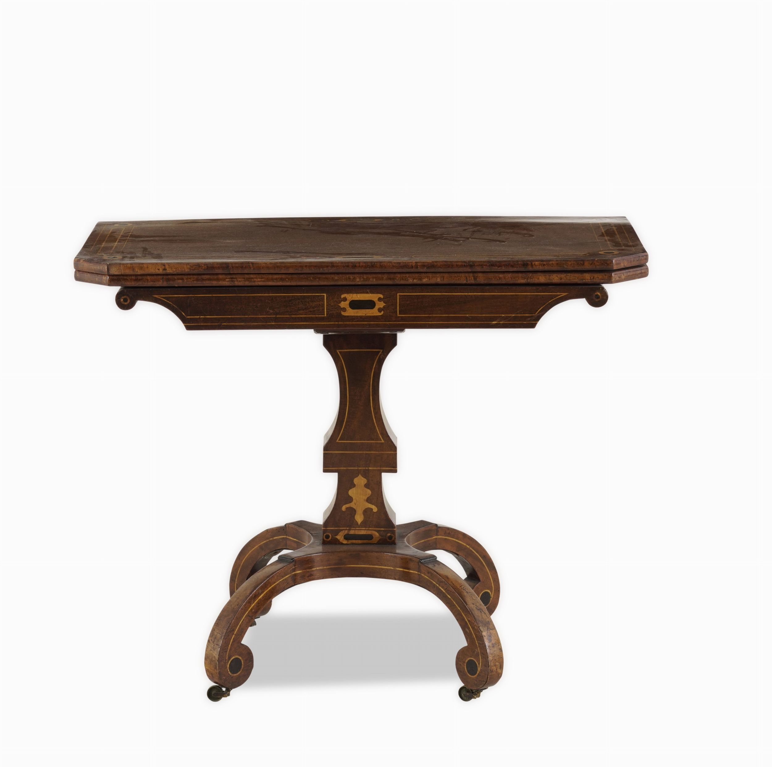 Tavolino da gioco intarsiato e filettato. XIX-XX secolo