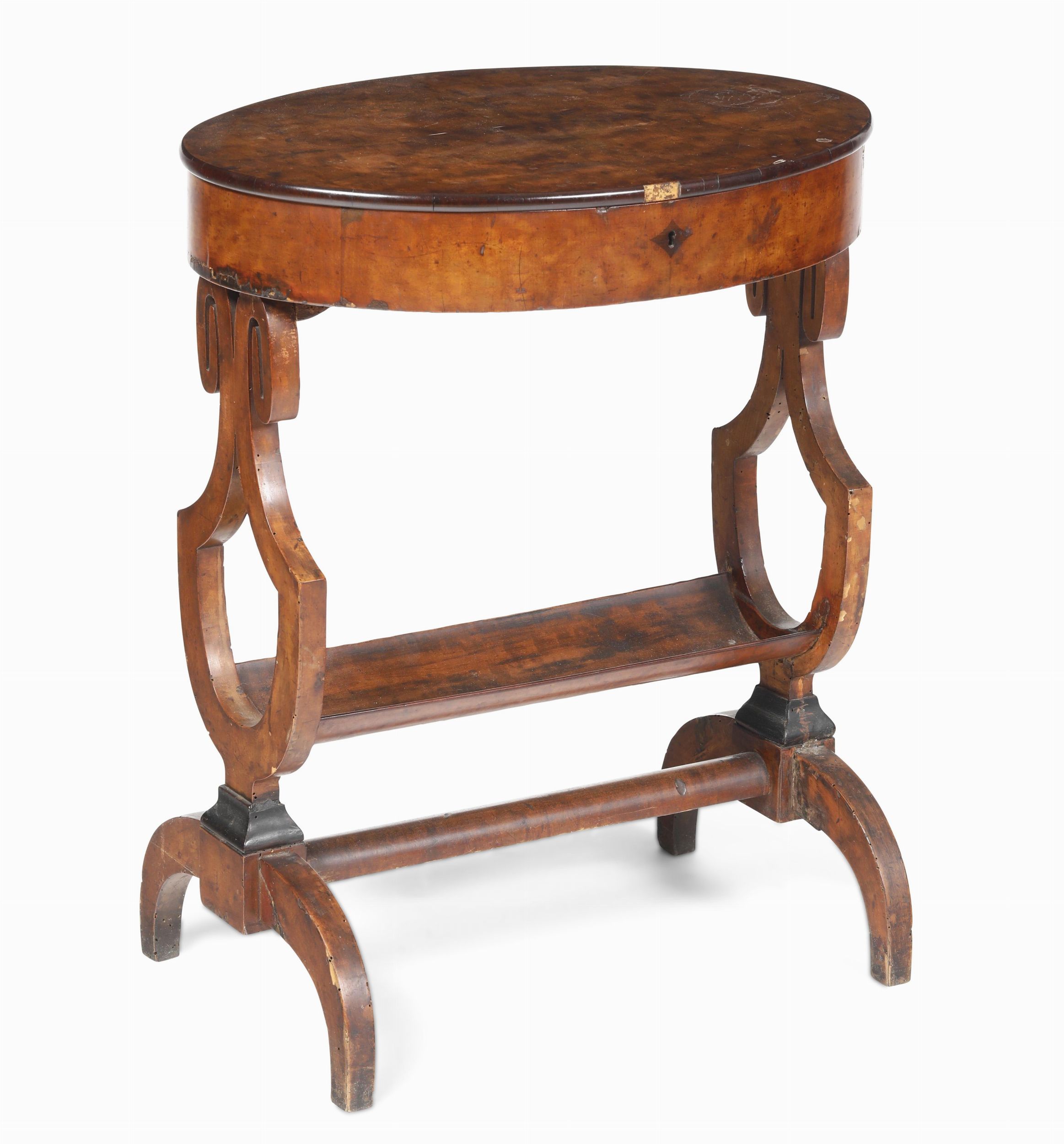 Tavolino da lavoro ovale lastronato in acero e palissandro. Ebanisteria napoletana [..]