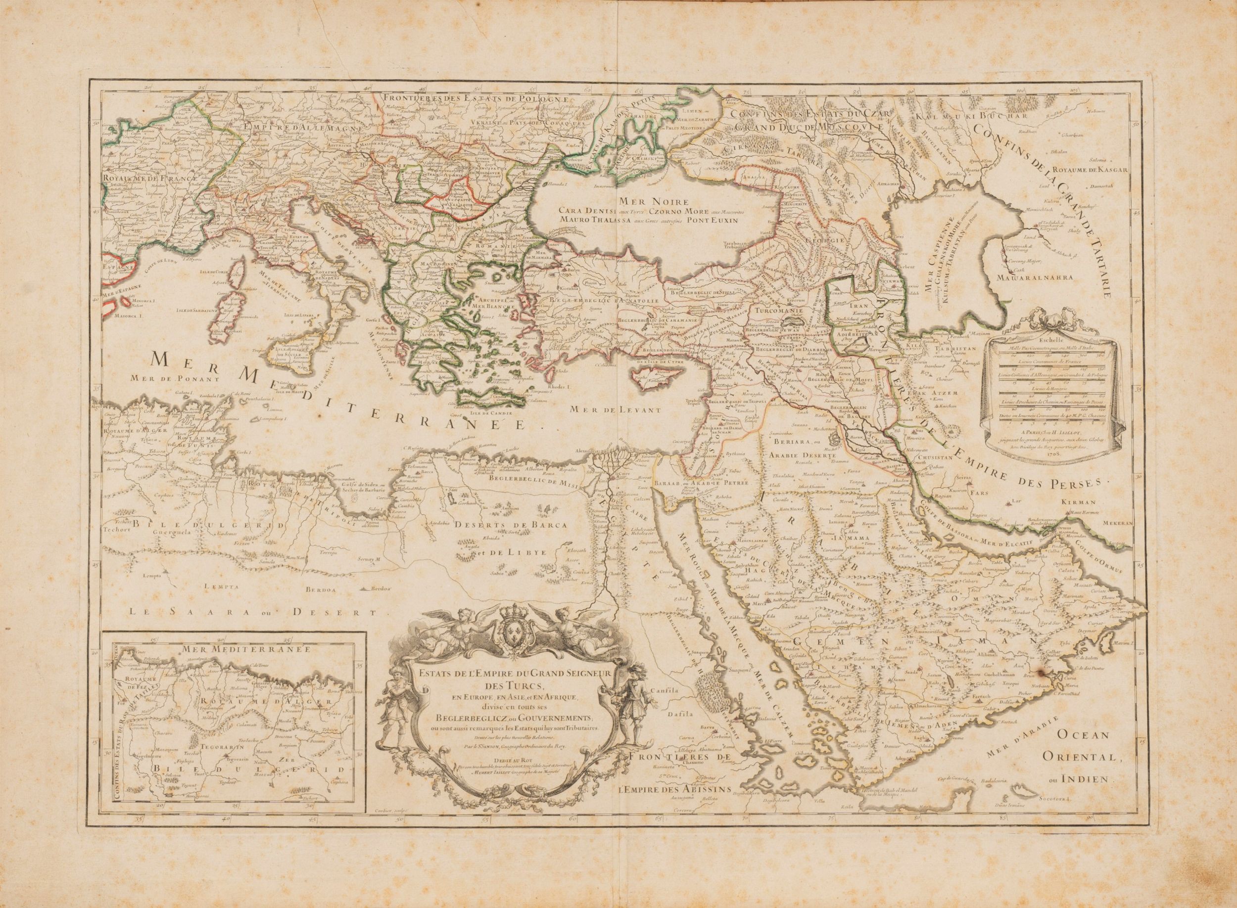 1708 Incisione su rame, colorata a mano raffigurante gli stati dell'Impero dei Turchi.