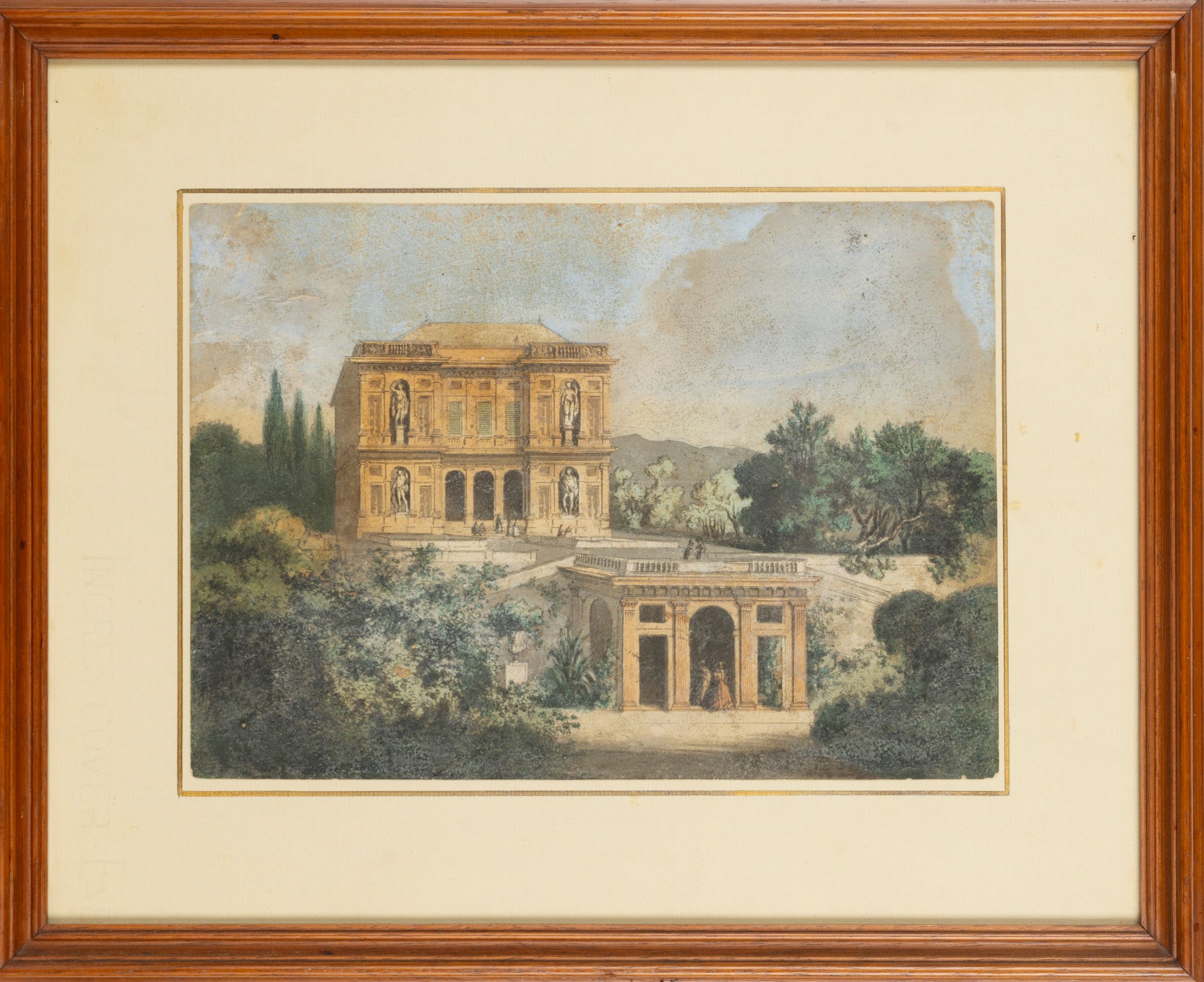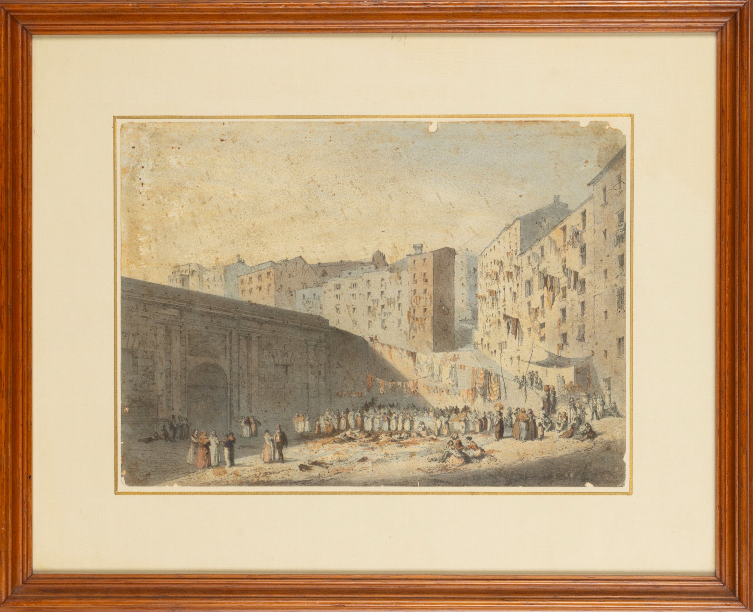 1830 Serie di 5 stampe acquerellate raffiguranti il porto e la lanterna, alcuni palazzi storici e scene di vita.