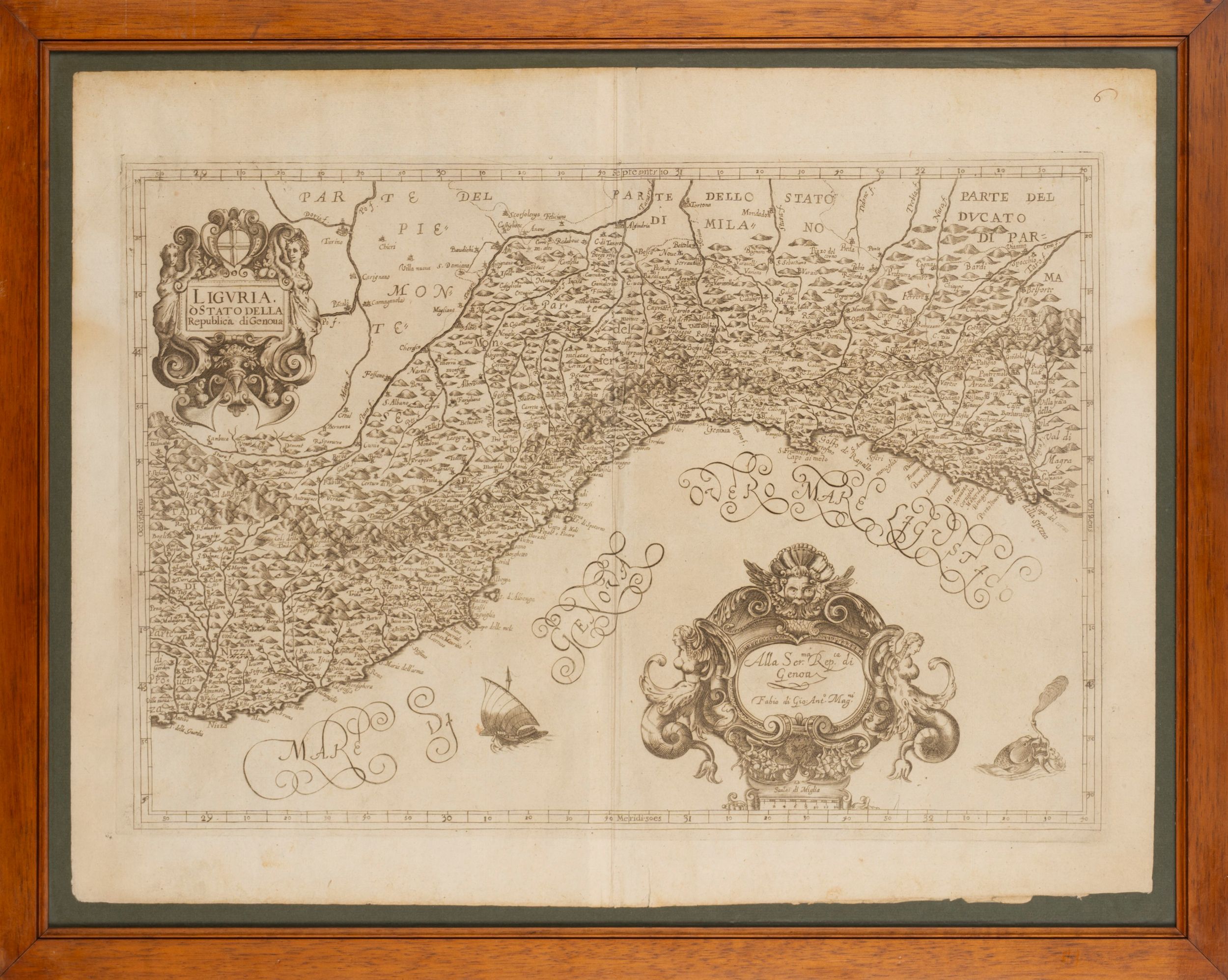 1620 Pregevole carta geografica della Liguria databile al 1620 ca.