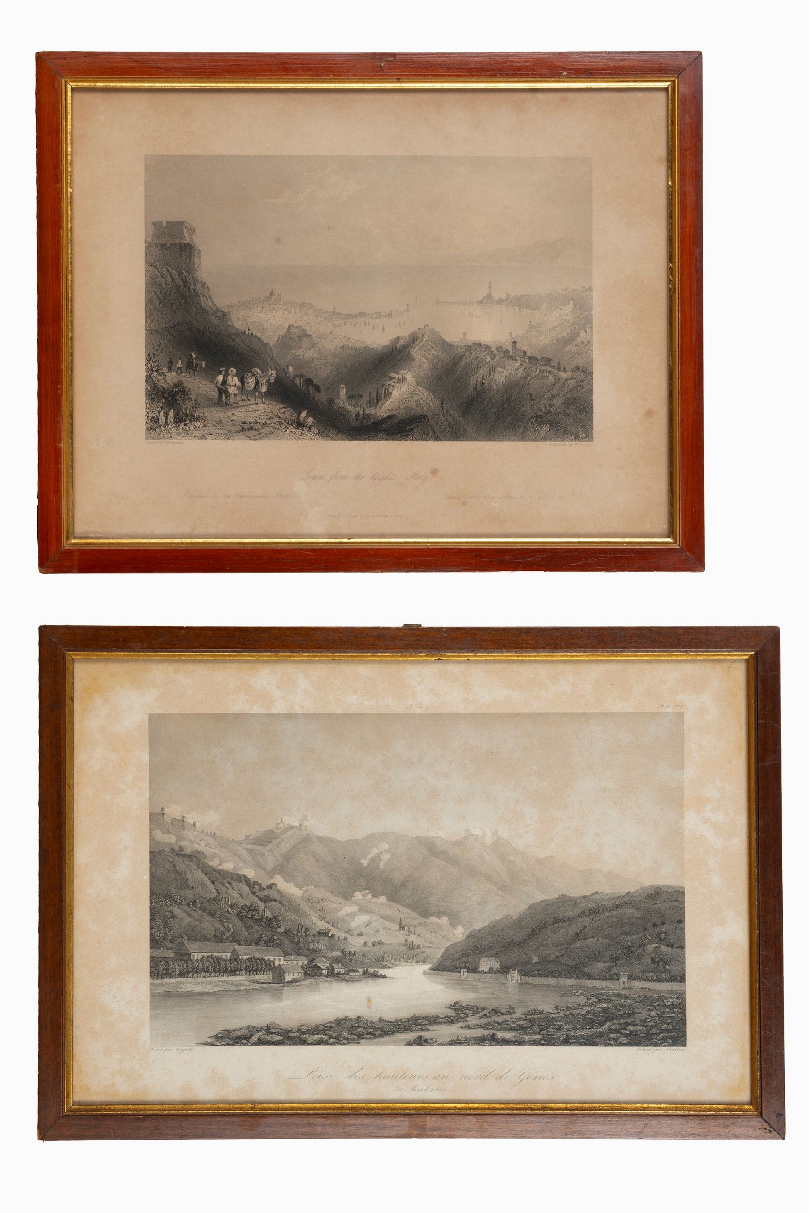1800 Coppia di stampe raffiguranti Genova vista da due diverse prospettive.