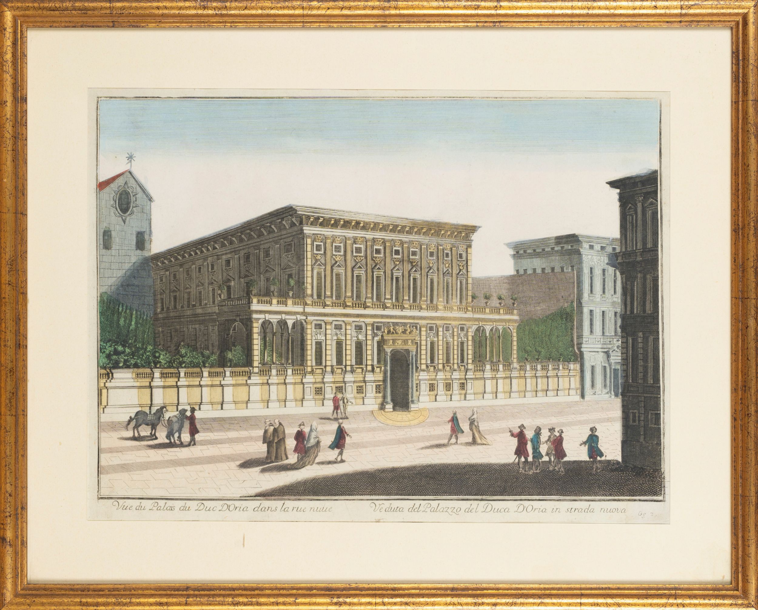 1700 Veduta remondiniana di palazzo Doria finemente acquarellata.