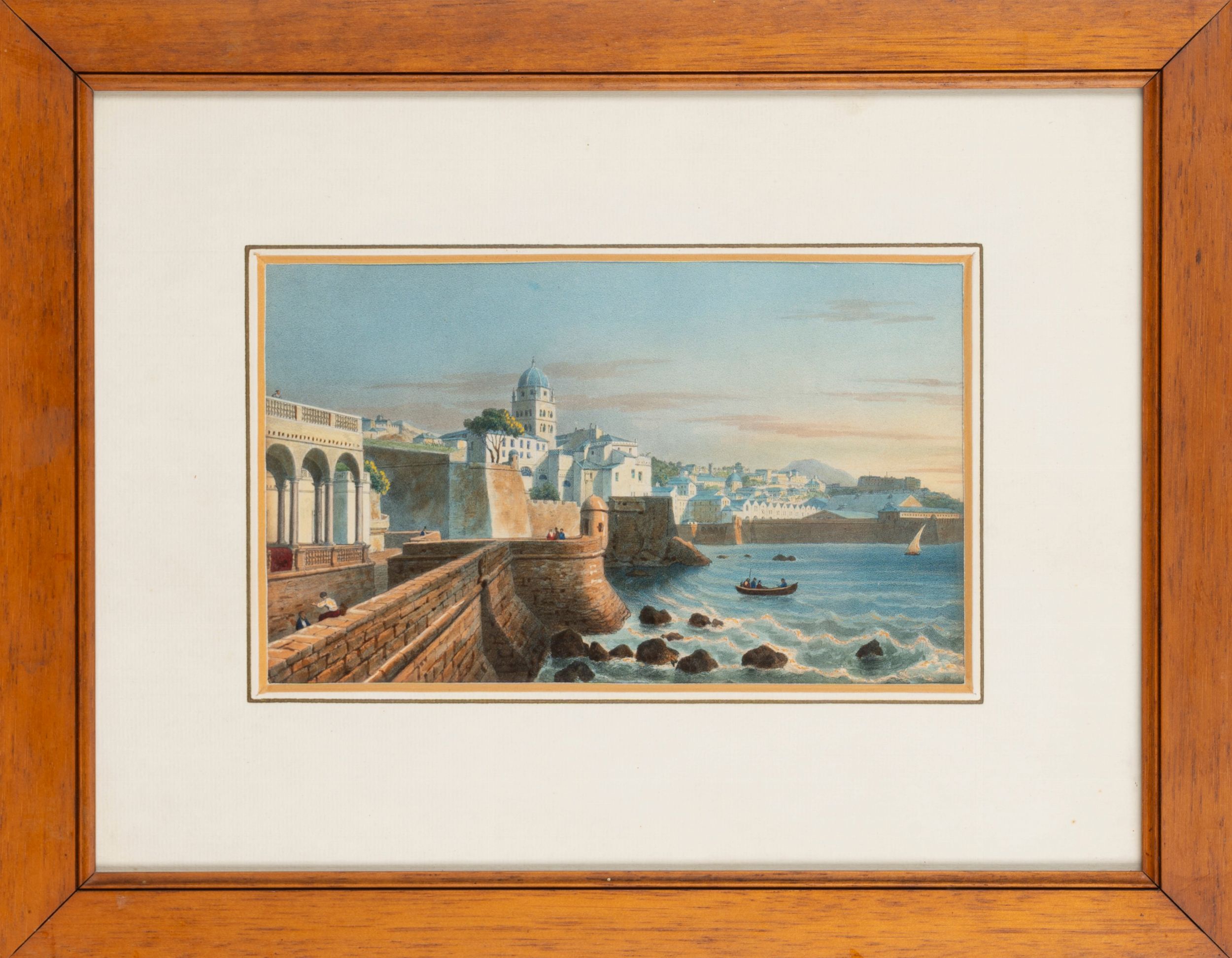 1840 Bella veduta del Ponte di Carignano, incisa da Zucoli e acquarellata da Landini; insieme nel lotto altro splendido scorcio di costa genovese.