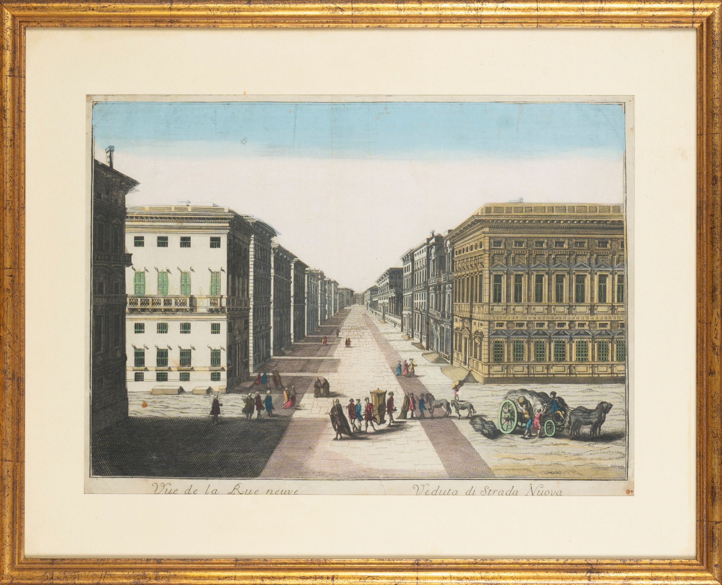 1780 Bella veduta acquarellata di strana nuova attribuita alla famiglia Remondini.