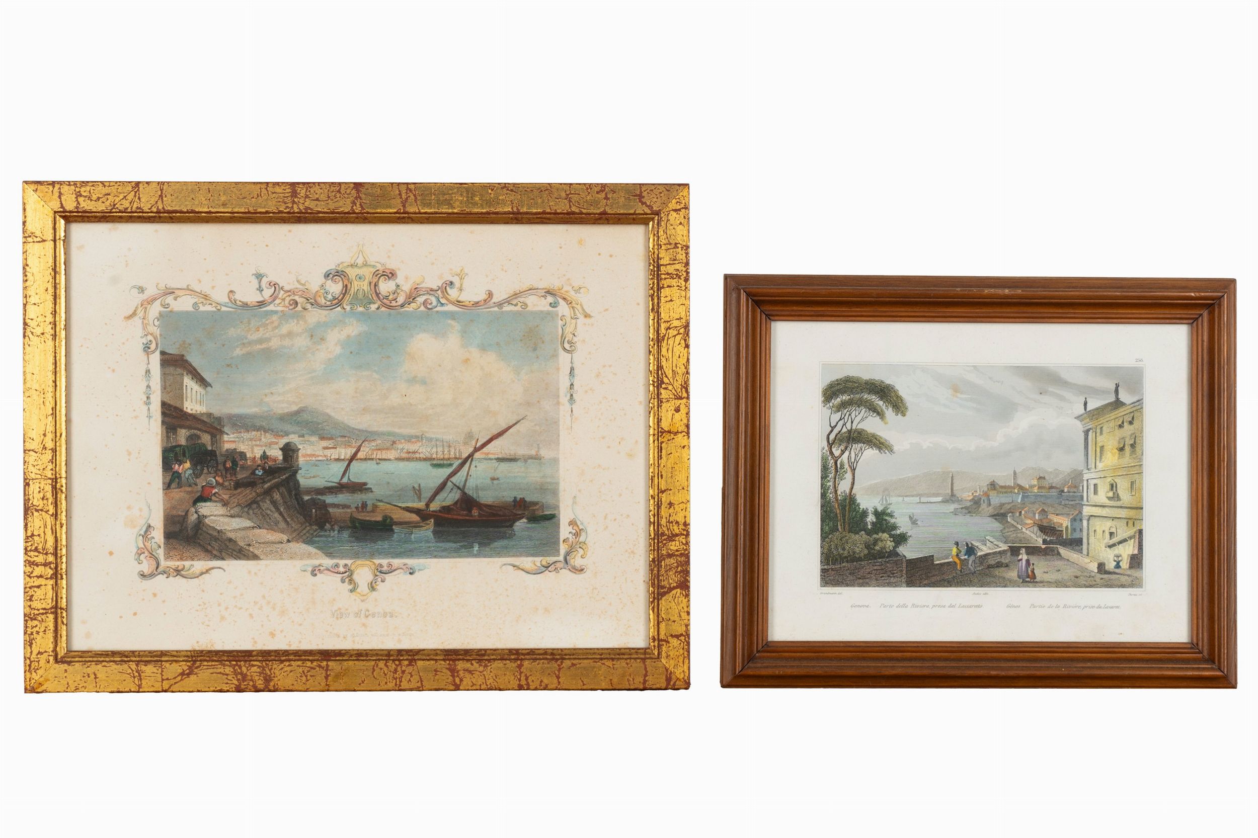 1850 Bella veduta acquerellata di Genova stampata da Samuel Walker, Boston; insieme nel lotto seguono altra veduta di Genova presa dal Lazzaretto, Palazzo Doria e Porto Reale.