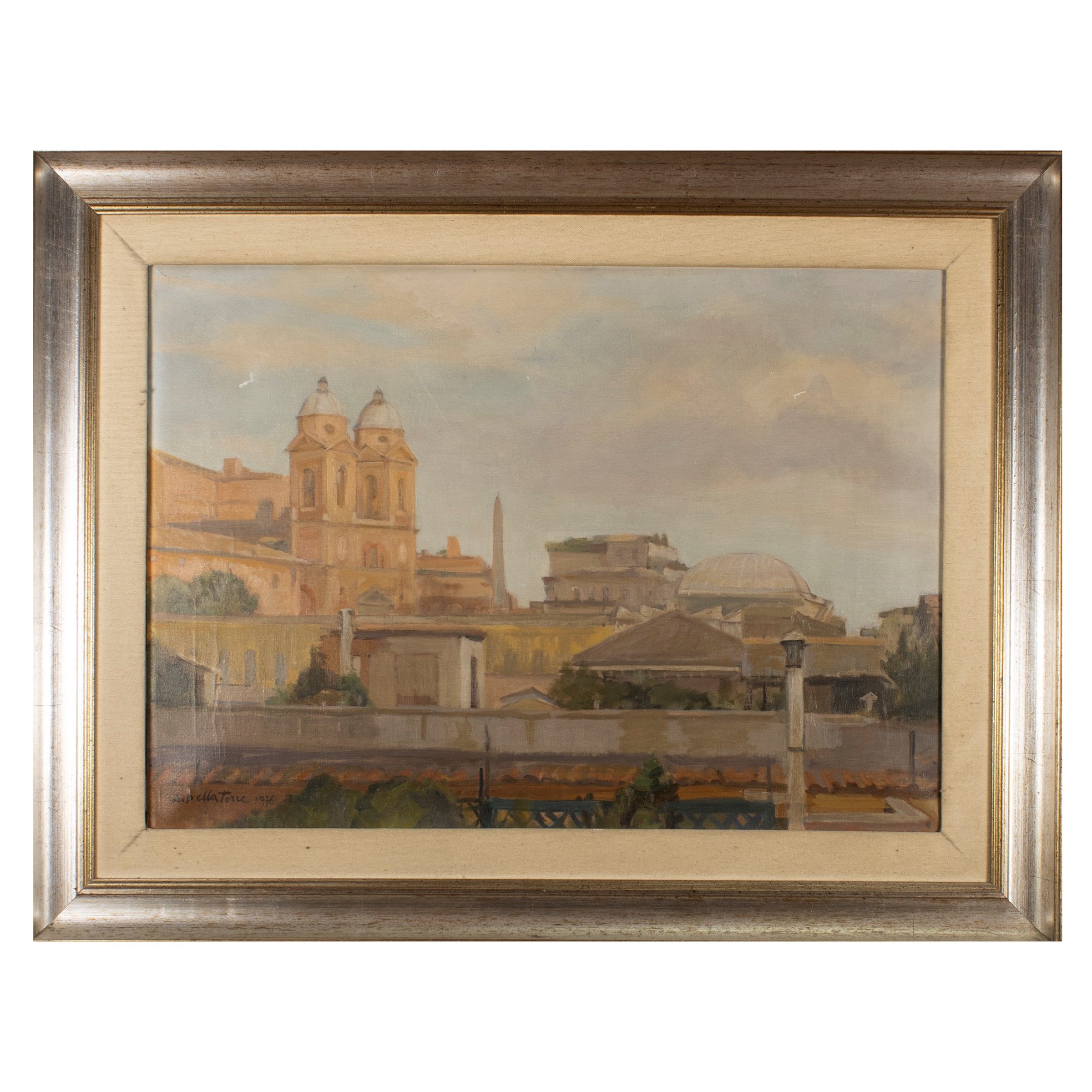 Roma 1903 - 2000 'Veduta di Roma con Trinità dei Monti', 1976, olio su tela, firmato e datato in basso a sinistra, entro cornice
