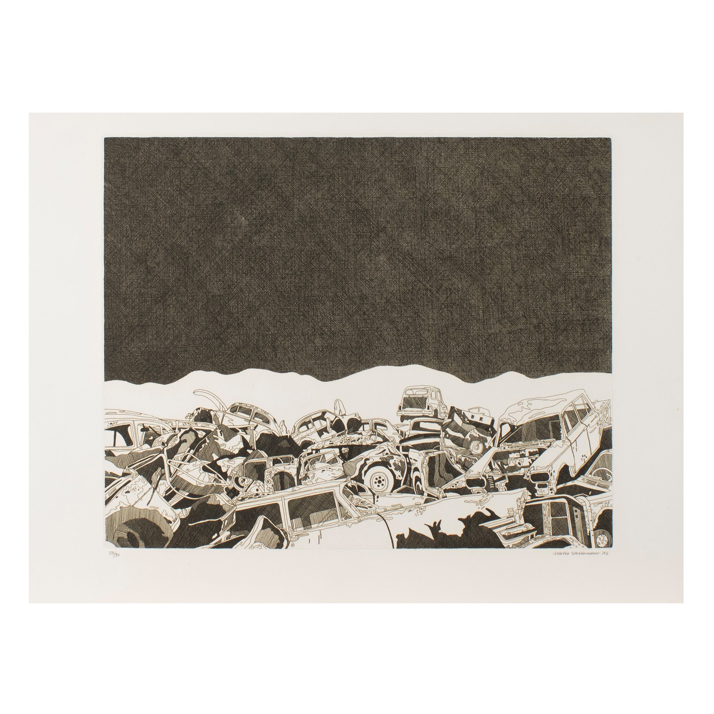 Bergamo 1938 'Senza titolo', 1972, acquaforte, es. 59/90, firmata e datata a matita in basso a destra, timbro a secco il Torcoliere in basso a destra