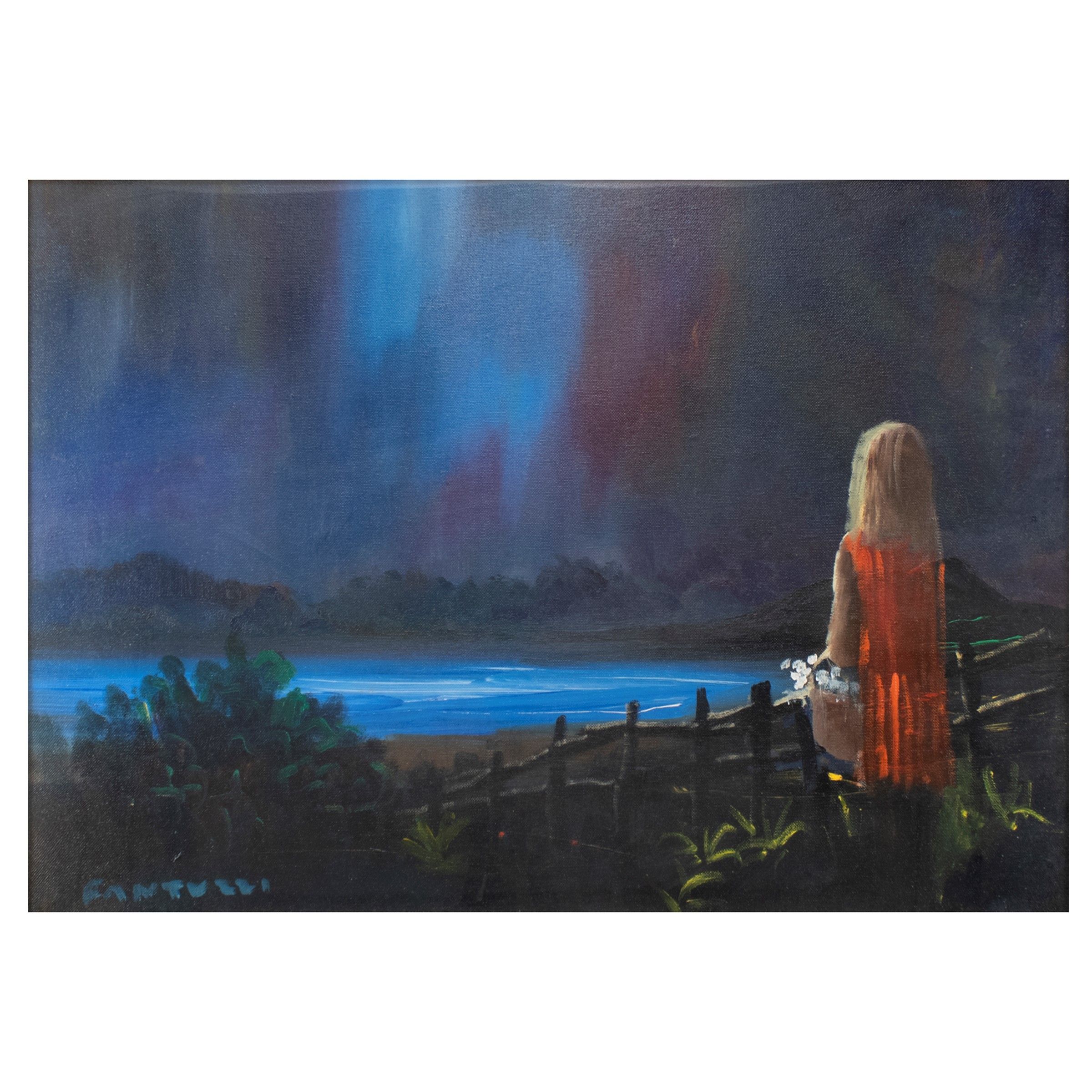 Modena 1909 - Verona 1987 'Ragazza in riva al lago', olio su tela, firmato in basso a sinistra, firmato sul retro, entro cornice