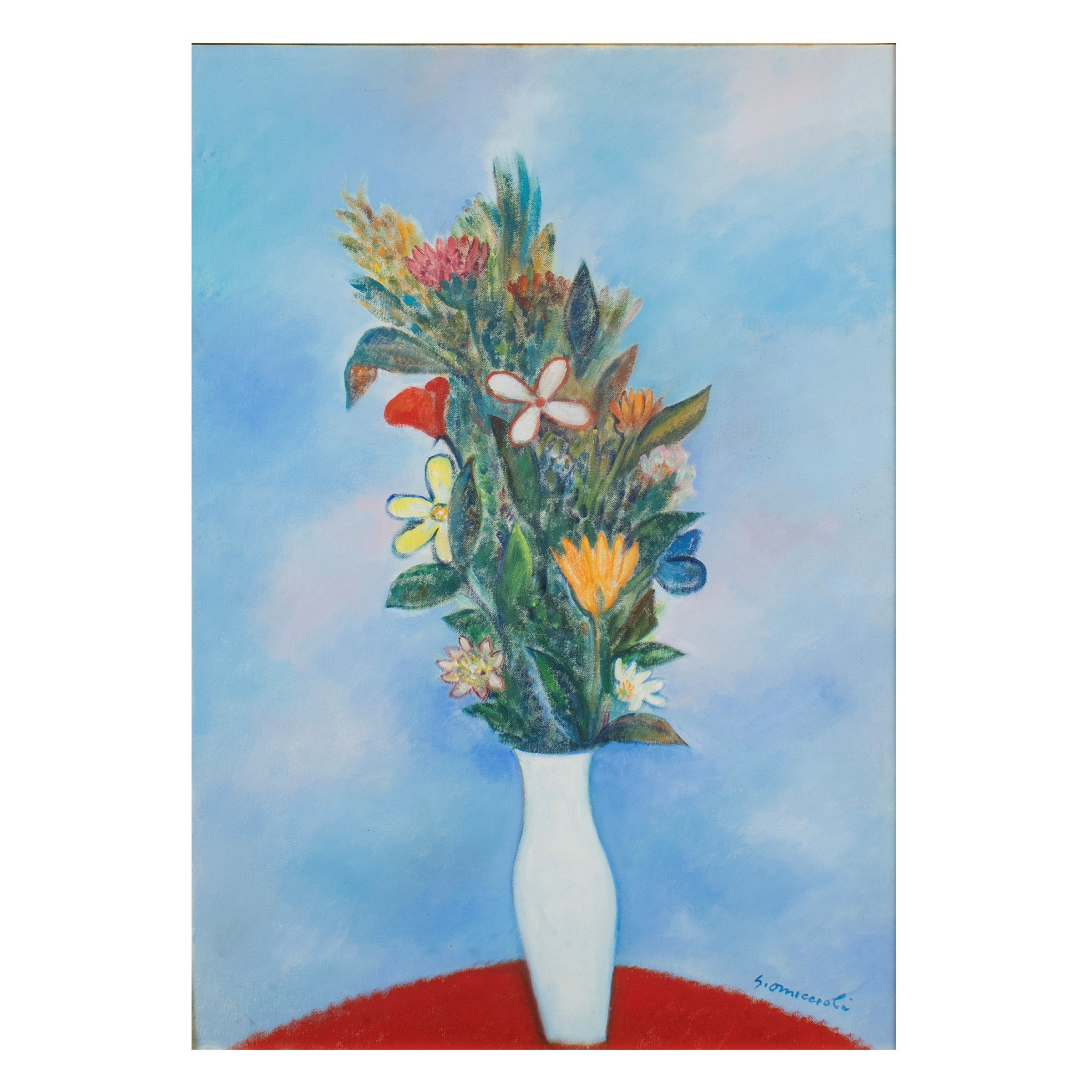 Roma 1901 - 1975 'Vaso di fiori', 1966, olio su cartone telato, firmato in basso a destra, firmato per autentica sul retro, entro cornice