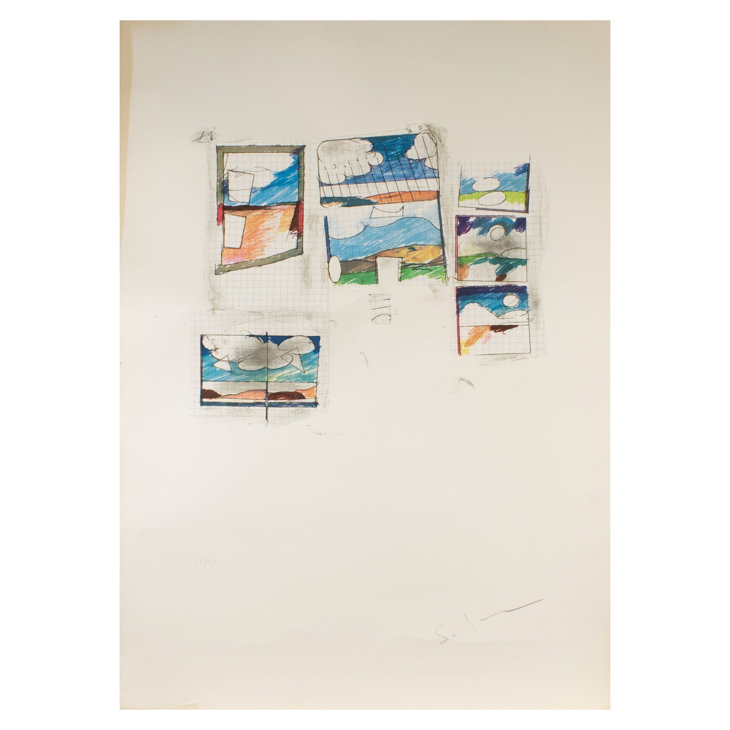 Homs 1934 - Roma 1998 'Senza titolo', litografia a colori e collage, es. 32/75, firmata in basso a destra, difetti