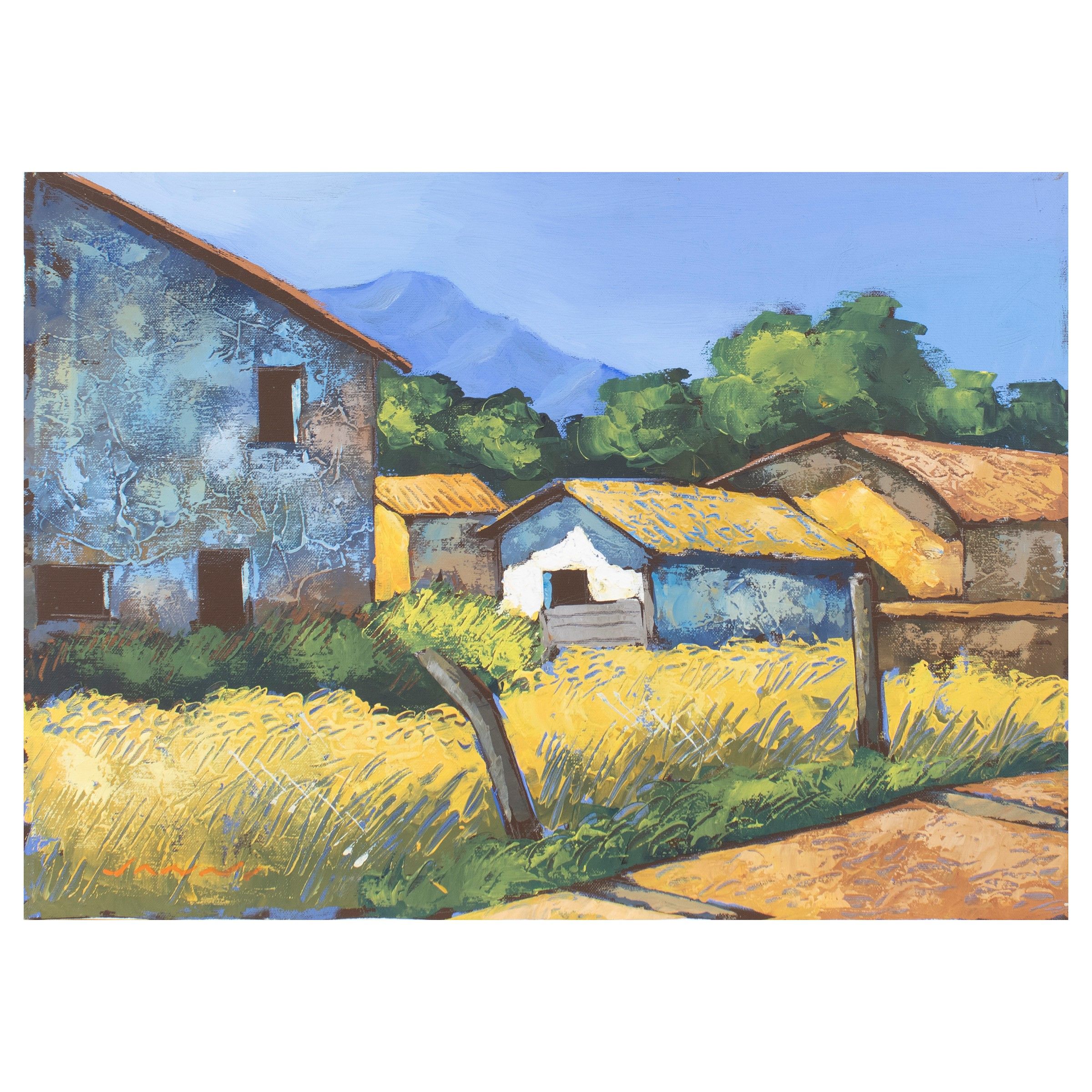 Terzone di Leonessa 1925 - Roma 2002 'Casali in campagna', olio su tela, firmato in basso a sinistra, firmato sul retro
