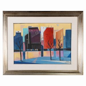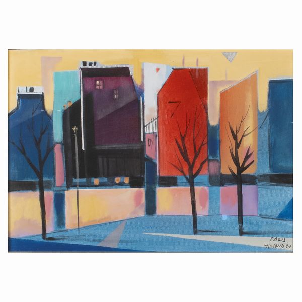 XX secolo 'Strada parigina', 1990, olio su tela, firmato e datato 'J David 90' in basso a destra, firmato e datato 'J David Paris 1990' al retro, entro cornice