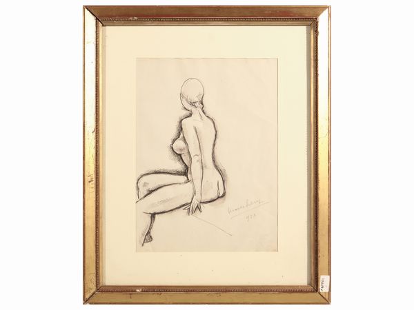 inchiostro su carta, firmato e datato, in cornice, alcuni difetti, al verso il margine superiore è applicato al passepartout
