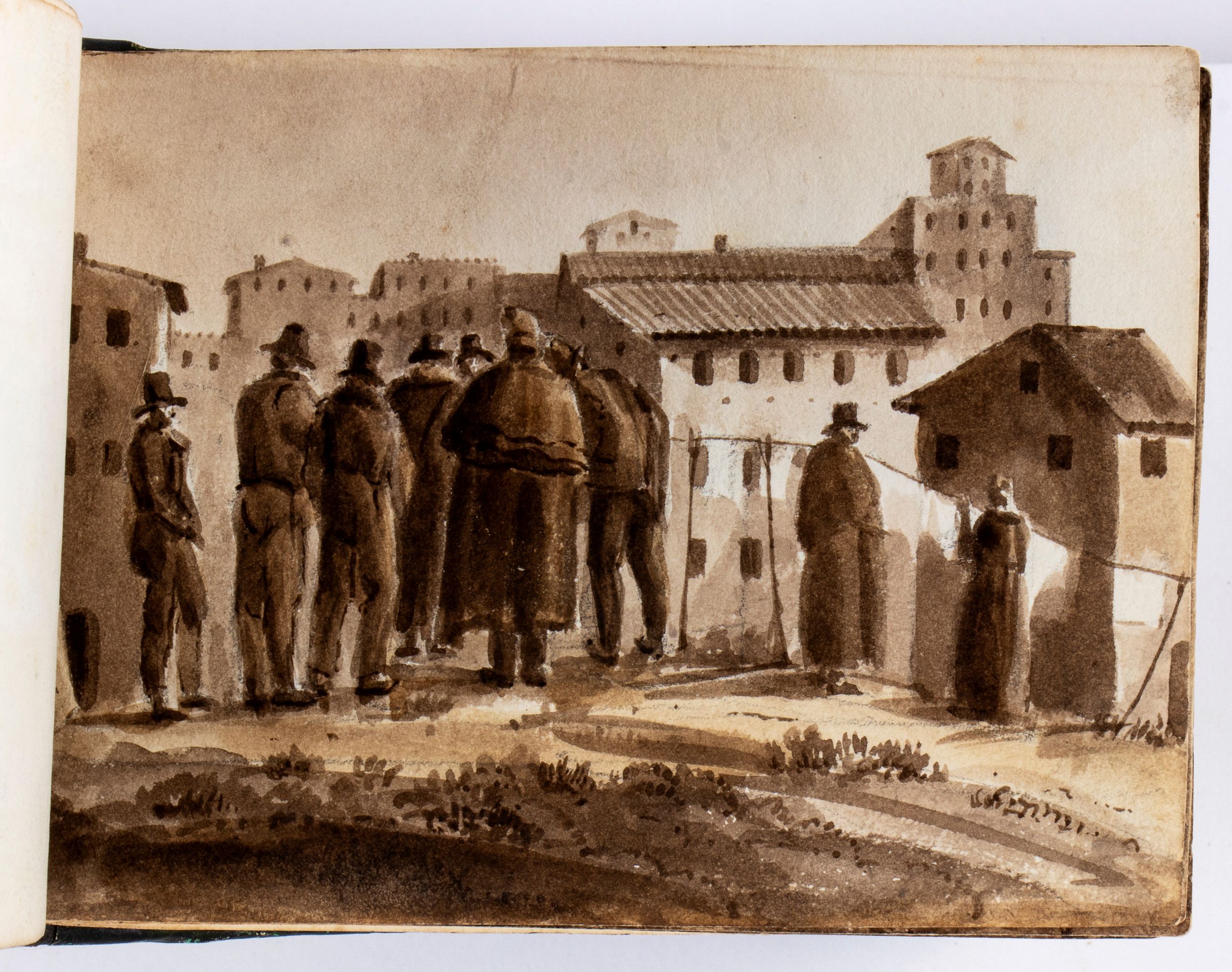 Artista del Grand Tour Inchiostro bruno, penna, matita, acquarello, su trentuno fogli di carta non vergata, 125 x 90 mm. Legatura in pelle.