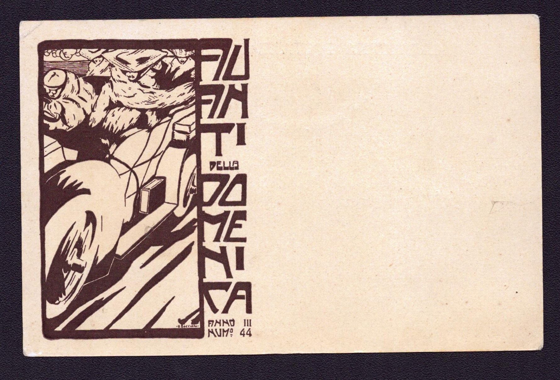 1905 Cartolina postale futurista, 90 x 140 mm. In ottimo stato salvo leggera brunitura uniforme e alcuni minimi difetti agli angoli.