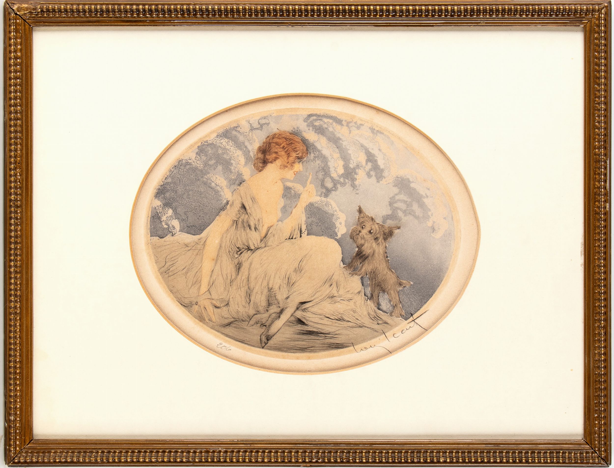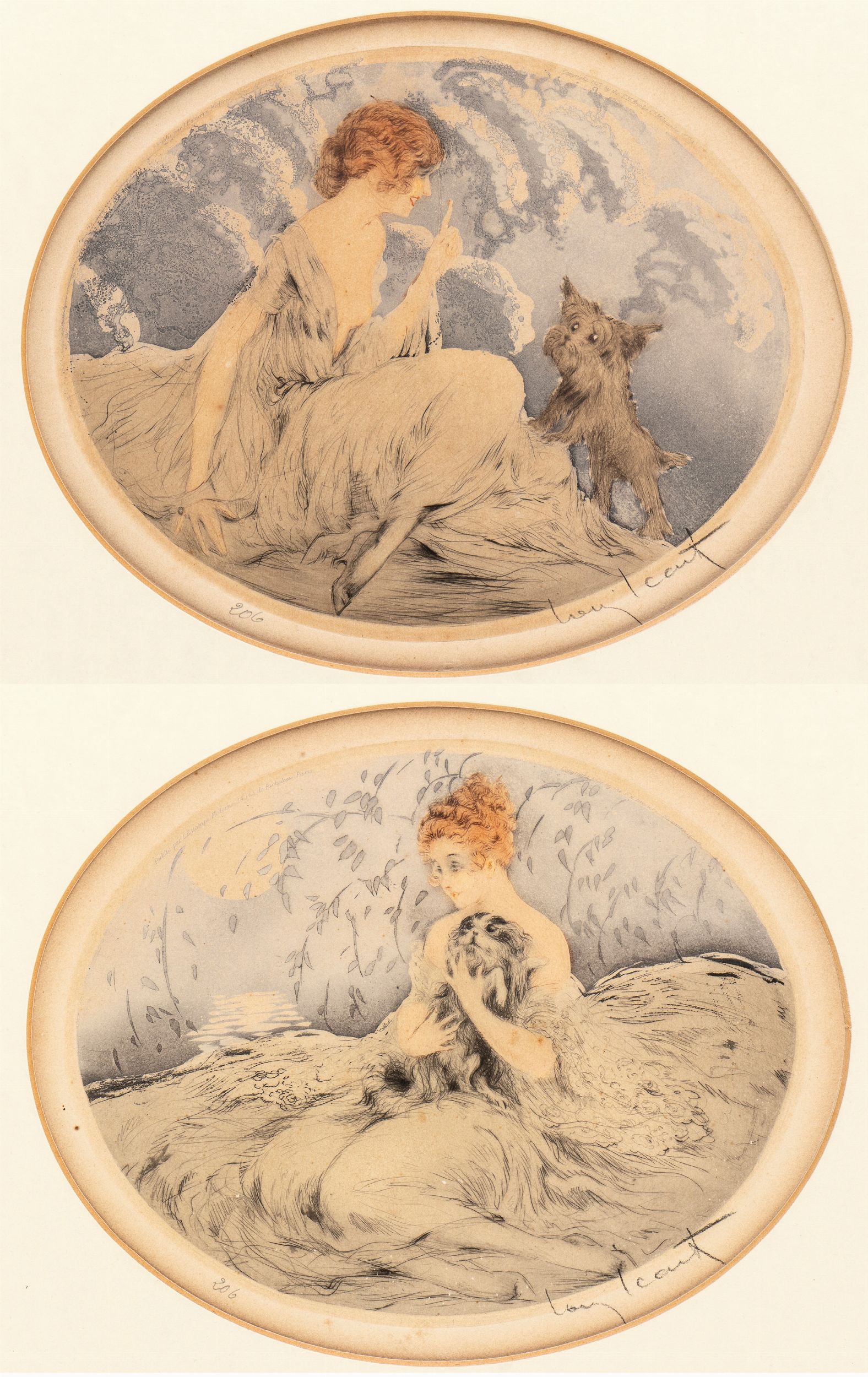 Acquatinta e puntasecca, 200 x 247 mm (lastra). Firmate a matita in basso a destra. Molto belle impressioni a colori, stampate da lastre ovali. Con passe-partout e cornici.