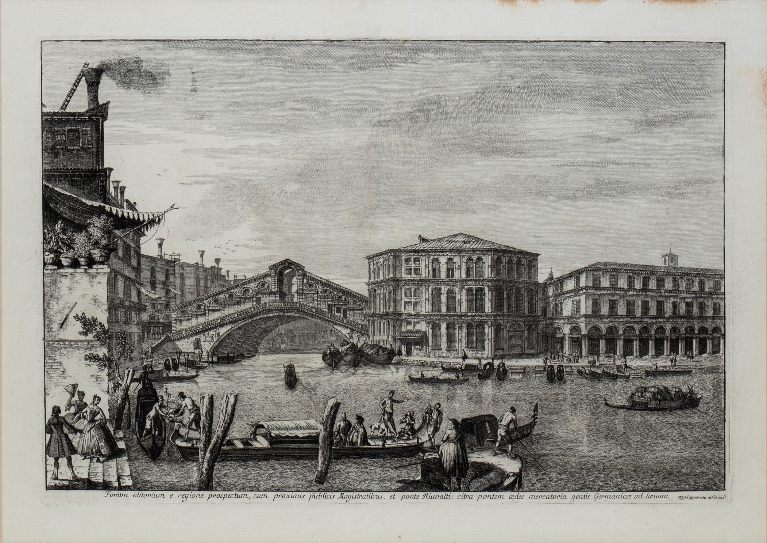 Dalla serie 'Magnificentiores Selectioresque Urbis Venetiarum Prospectus'. Acquaforte, 315 x 465 mm (lastra), 375 x 525 mm ca. (foglio). I stato su 4, avanti la numerazione. Molto bella, fresca, stampata su carta vergata. Foglio in ottimo stato di conservazione, salvo delle macchie verso il bordo superiore. Con cornice veneziana coeva in fiore di radica di noce e perlinatura dorata (67 x 85 x 3 cm). La stampa non è stata esaminata fuori dalla cornice.