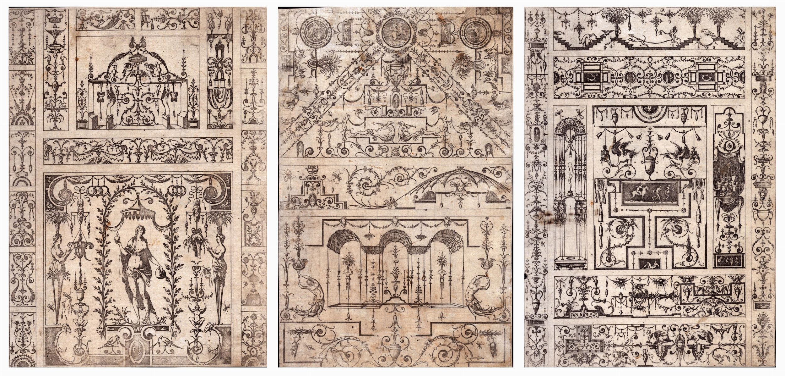 Lotto di tre incisioni. Acquaforte, 232 x 167; 240 x 167; 260 x 167 mm .  Belle impressione su carta vergata. Due fogli con filigrane. Alcune macchie e leggere bruniture, ma nel complesso in ottimo stato.