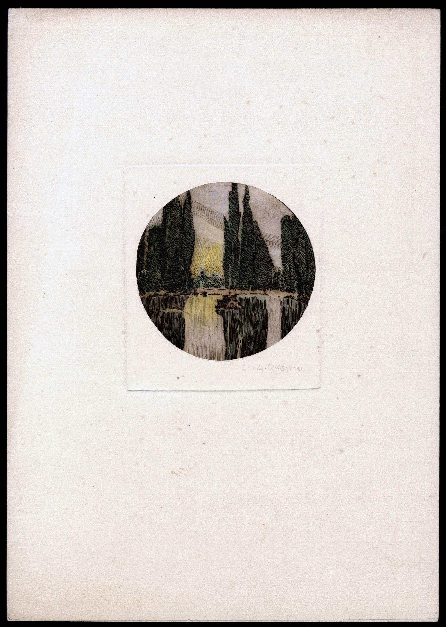 1910 Acquaforte a tre colori, 100 x 115 mm (lastra), 225 x 318 mm (foglio). Firmata a matita in basso a destra. Molto bella impressione su carta non vergata spessa. In ottimo stato di conservazione.