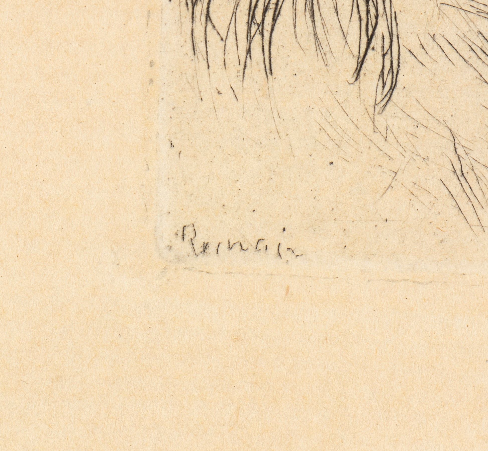 Acquaforte, 118 x 81 mm (lastra), 180 x 150 mm ca. (foglio). II stato, edizione postuma. Delteil 8. Bella impressione su carta vergata moderna. Con cornice e passe-partout (43 x 33 x 3 cm).