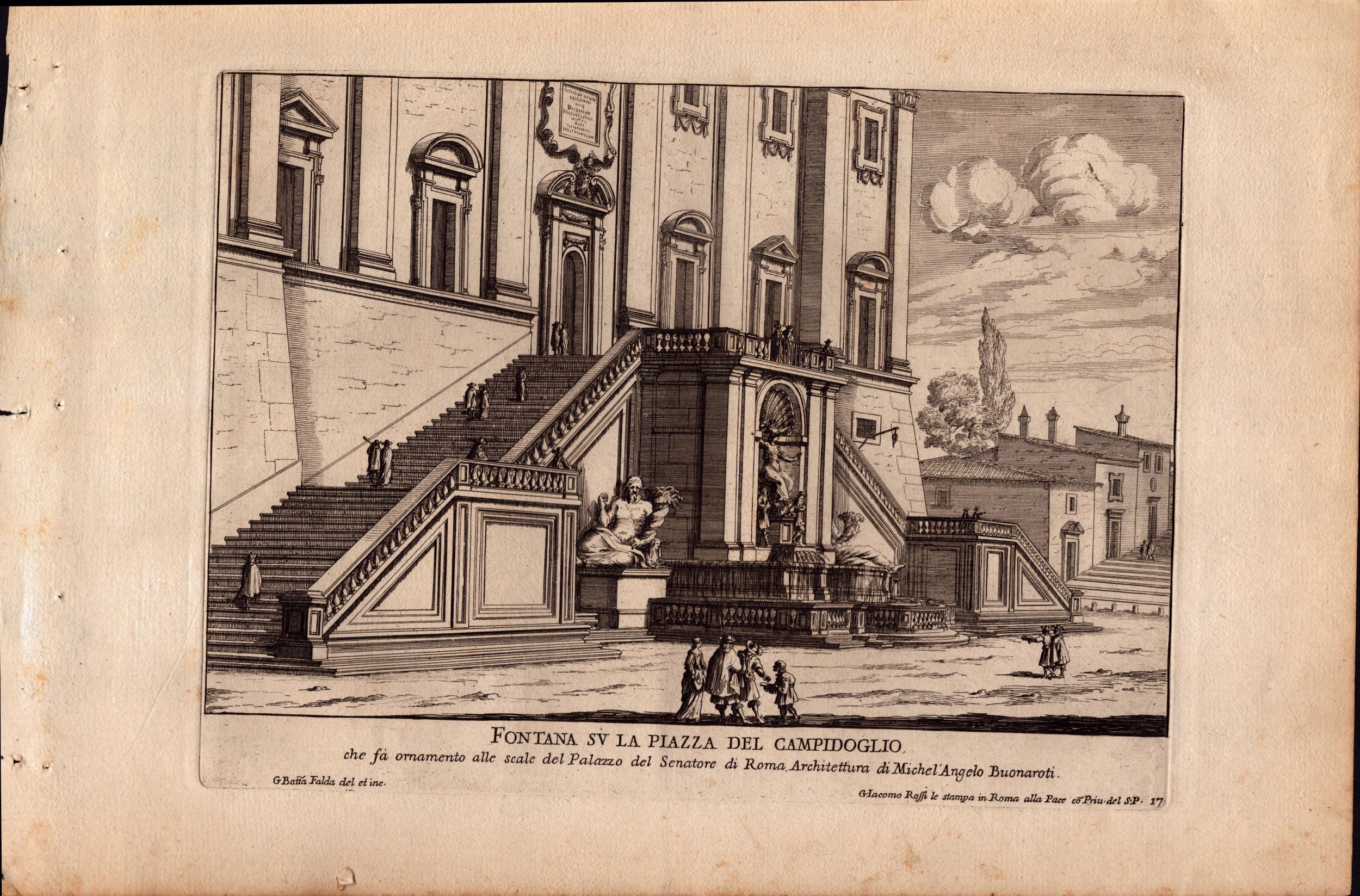 Lotto di dieci incisioni tratte da varie edizioni dell'opera 'Le fontane di Roma nelle piazze e luoghi publici della città, con li loro prospetti, come sono al presente'. Acquaforte, 285 x 415 mm ca. (cad. foglio). Belle impressioni su carta vergata (alcuni esemplari con filigrana). Alcuni fogli con bordi sinistri irregolari da legatura, altri con leggere fioriture e bruniture. Nel complesso in buono stato.