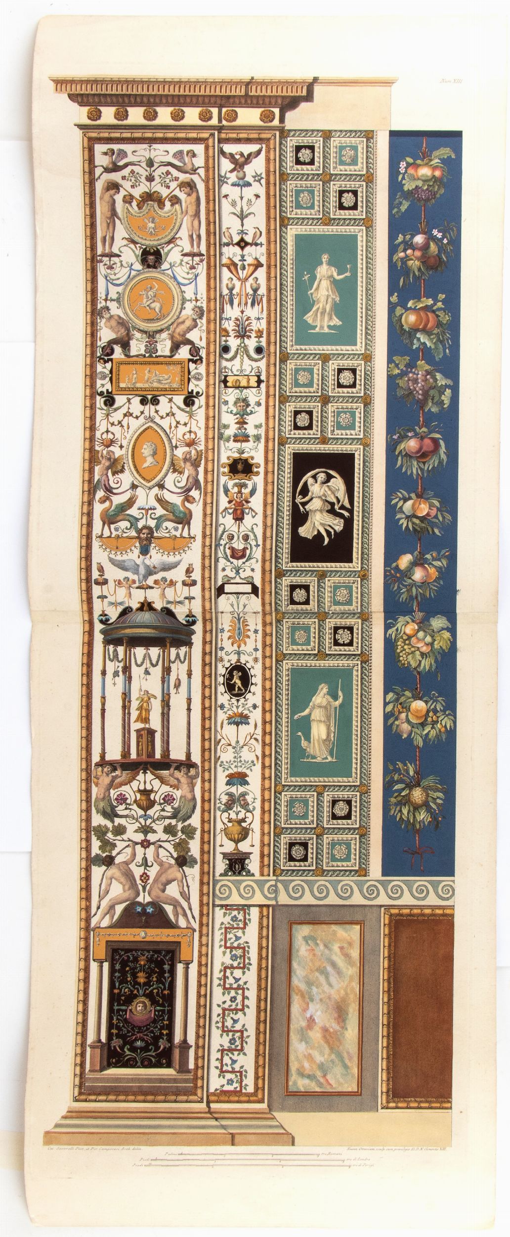 Acquaforte, 1210 x 460 mm ca. Due fogli uniti. Esemplare con splendida coloritura a mano, riportante i colori della loggia. Stampato su carta vergata con grande filigrana. Foglio con margini preservati, in ottimo stato di conservazione.