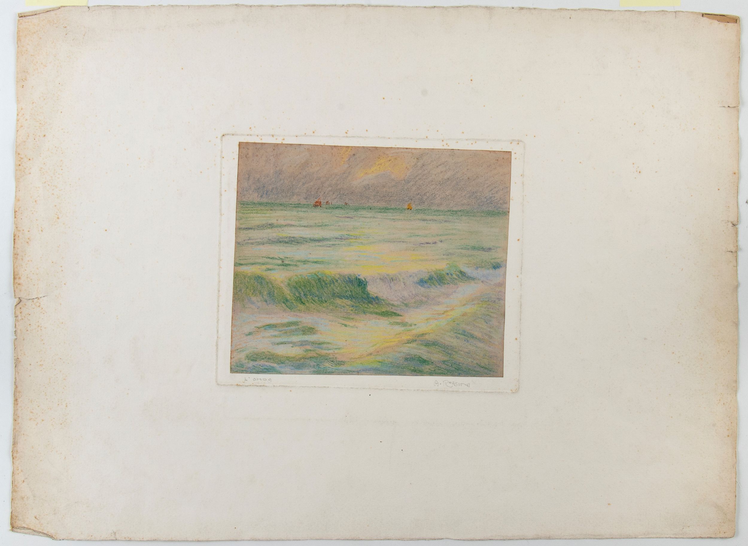 Lotto di due incisioni: L'onda Litografia, 440 x 600 mm. Titolo e firma a matita in basso. Bella impressione su carta non vergata. Foglio con lievi sgualciture e alcuni segni di fioritura. Incluso: Ponte dei sospiri, Venezia Acquaforte, 245 x 143 mm (foglio). Molto bella impressione su carta non vergata. Foglio con alcune leggere bruniture e uno strappo in basso.