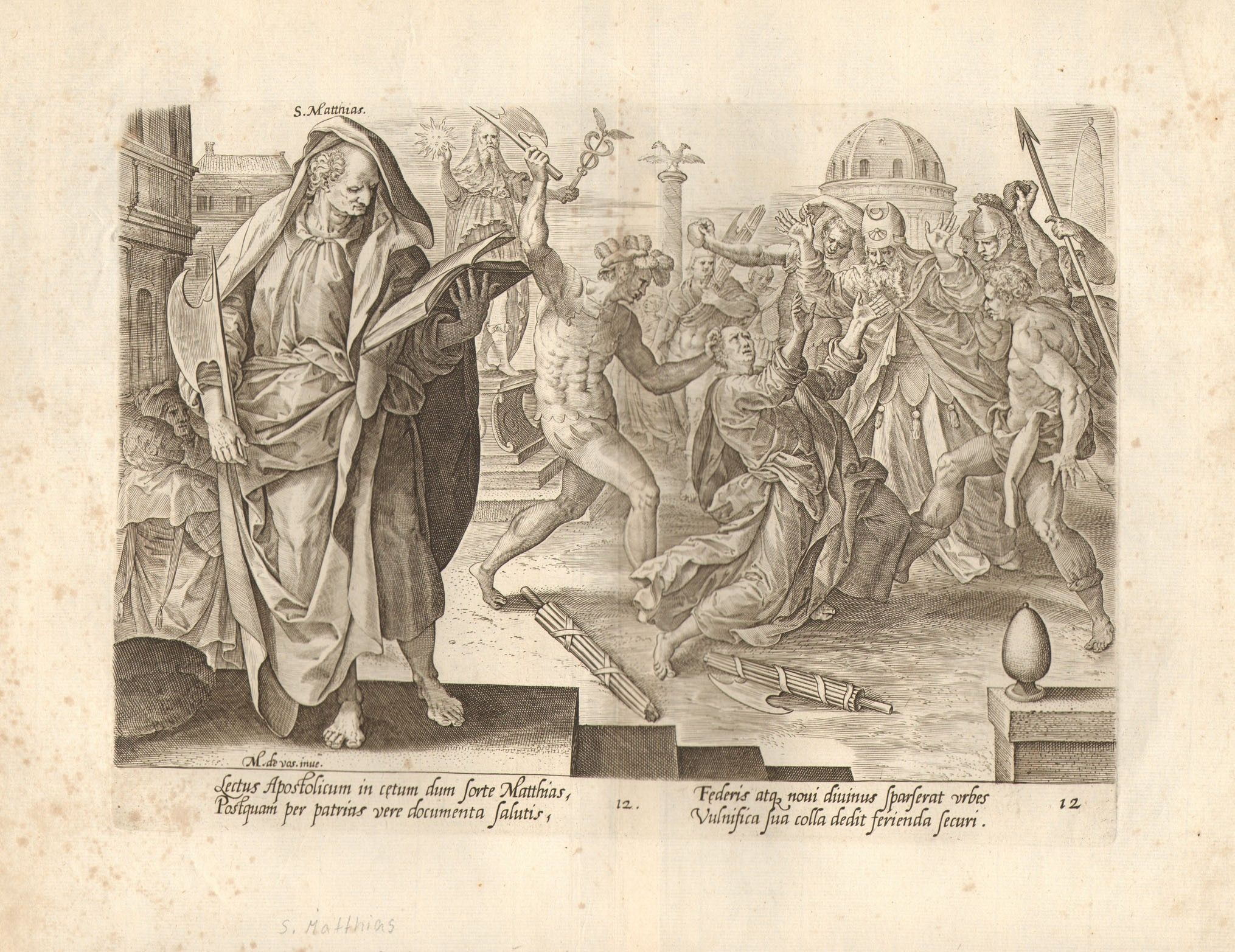 Da Martin de Vos. Bulino, 205 x 280 mm (lastra), 325 x 400 mm (foglio). II stato, dopo la rimozione dell'indirizzo “Aux 4 vents' e con l'aggiunta del numero. Strauss 47. Bell’esemplare stampato su sottile carta vergata con filigrana (Arme sorretta da Leoni). Grandi margini oltre l’impronta della lastra, consueta piega editoriale. Foglio con tracce di foxing e difetti ai bordi, ma nel complesso in buono stato di conservazione.