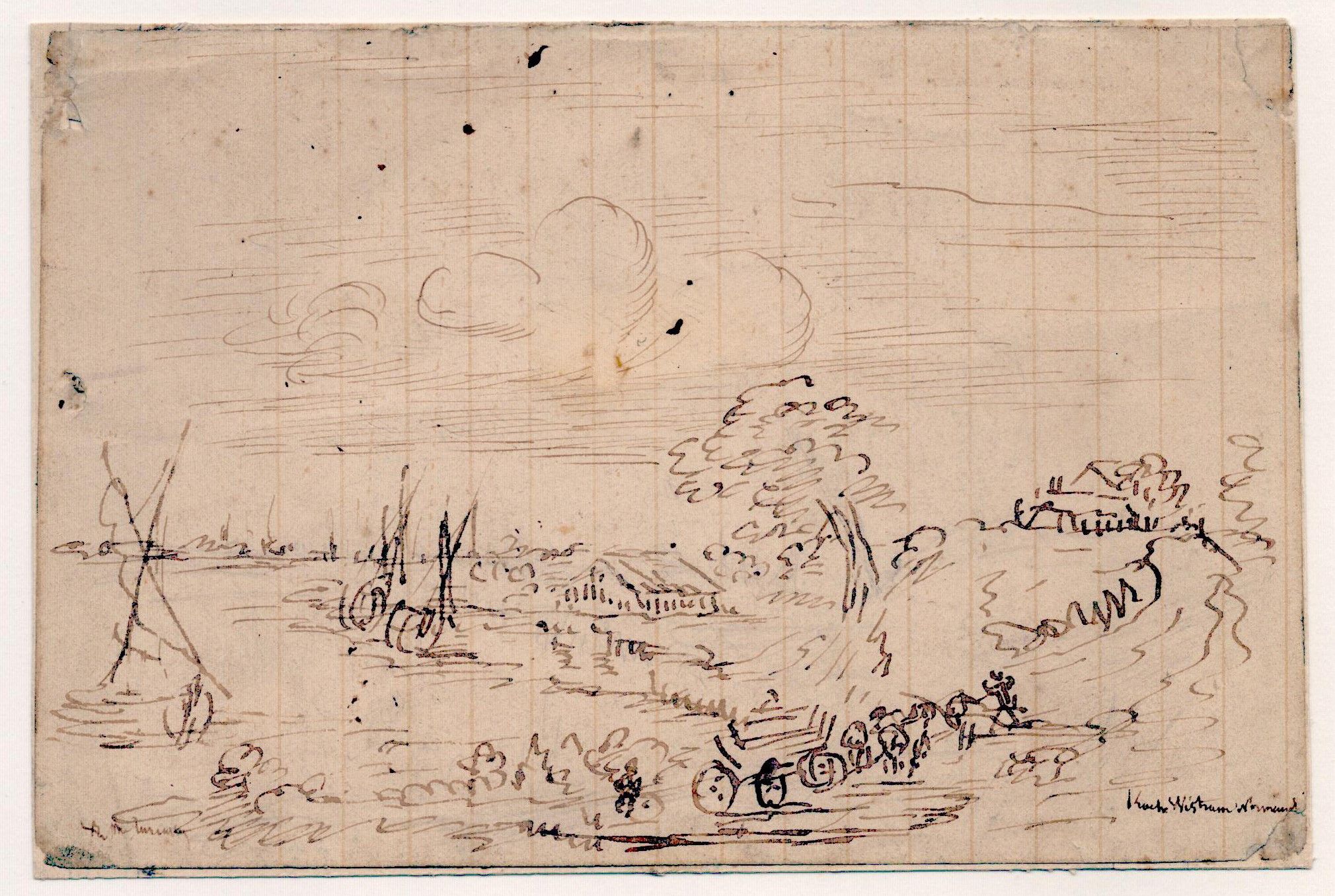 Artista olandese del XVIII-XIX secolo Inchiostro su carta non vergata, 107 x 163 mm. Firma indecifrabile in basso a destra.
