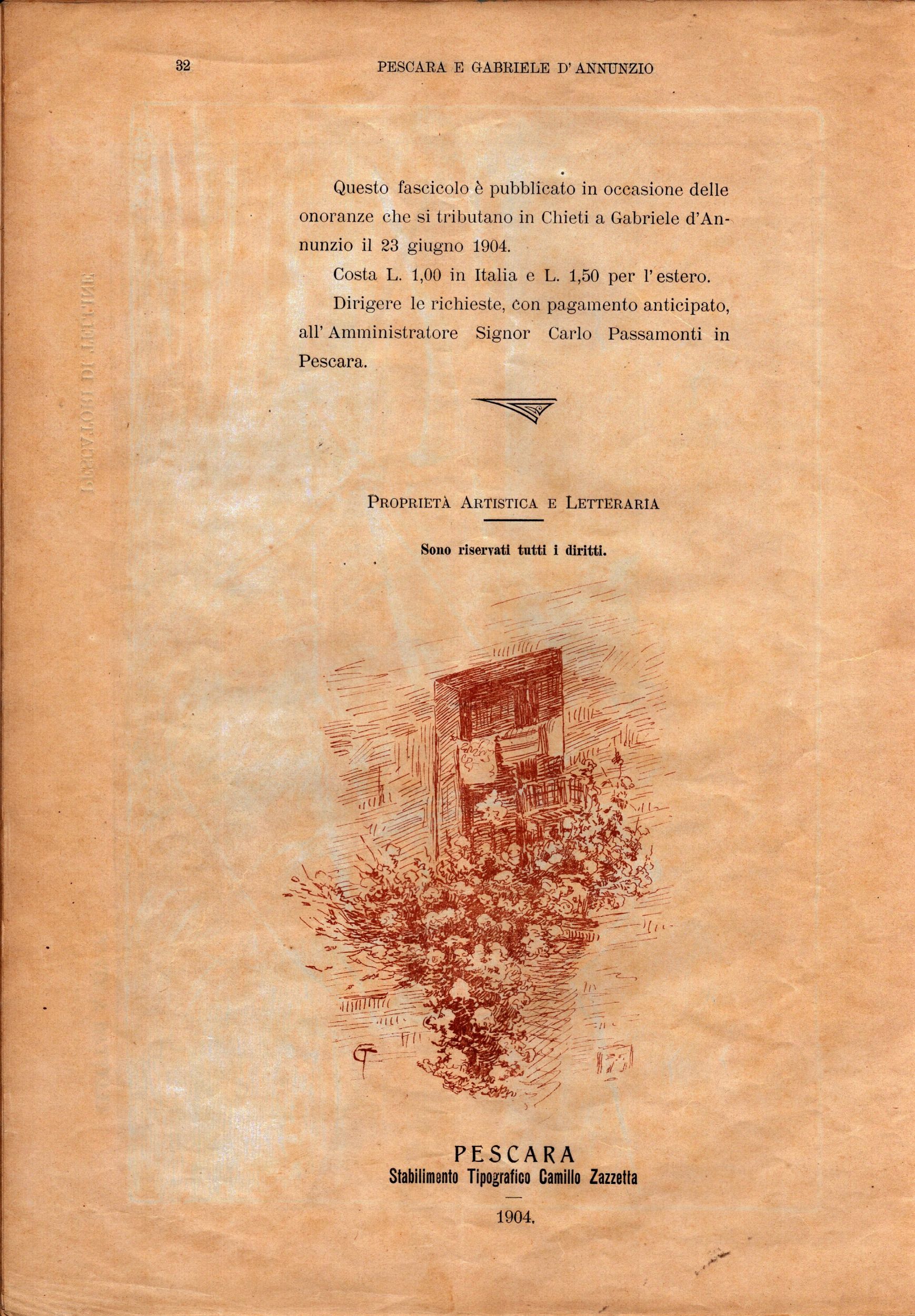 (Camillo Zazzetta 1904) Raro fascicolo con la copertina di Basilio Cascella e all'interno varie illustrazioni di Tommaso Cascella e altri artisti contemporanei. Tot. 32 pagine.