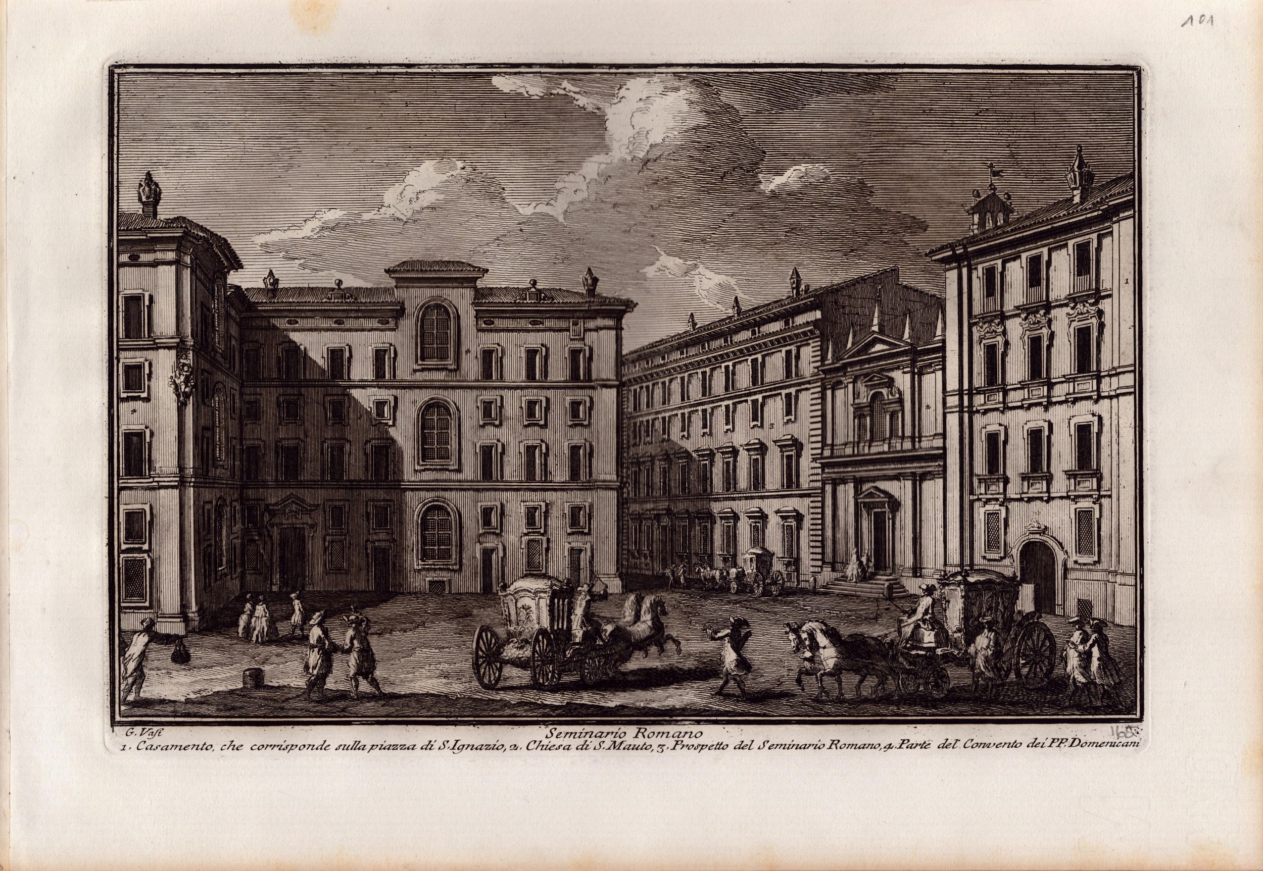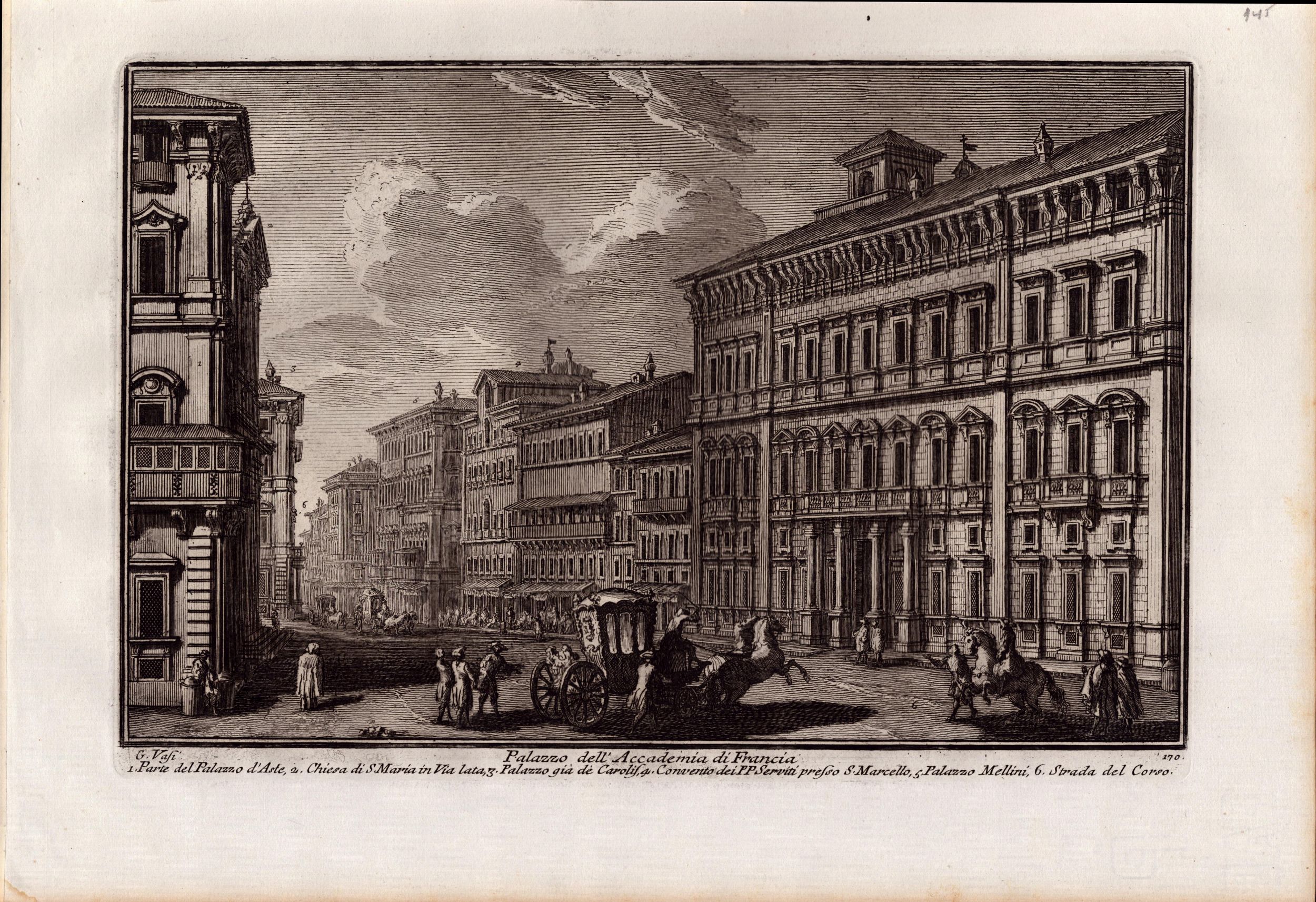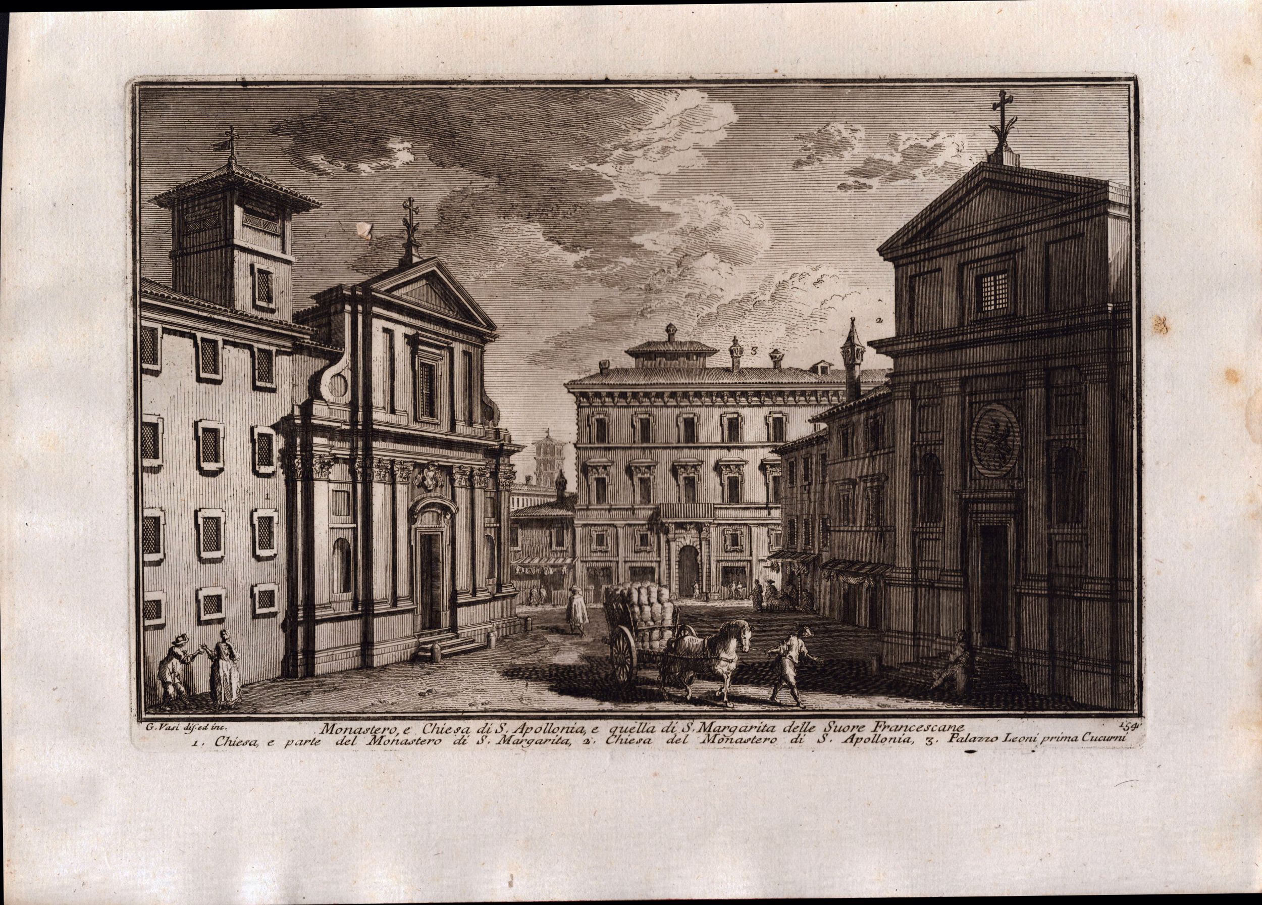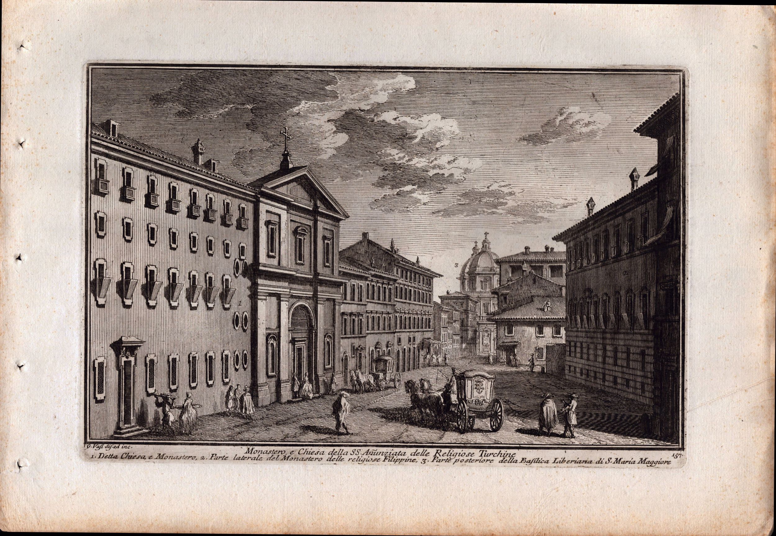 Lotto di sedici incisioni tratte dalla serie 'Raccolta Delle Più Belle Vedute Antiche, E Moderne Di Roma'. Acquaforte, 305 x 430 mm ca. (cad. foglio). Belle impressioni stampate su carta vergata. Nel complesso in buono stato di conservazione. Alcuni fogli con fori da legatura lungo il bordo sinistro, altri con leggere bruniture.