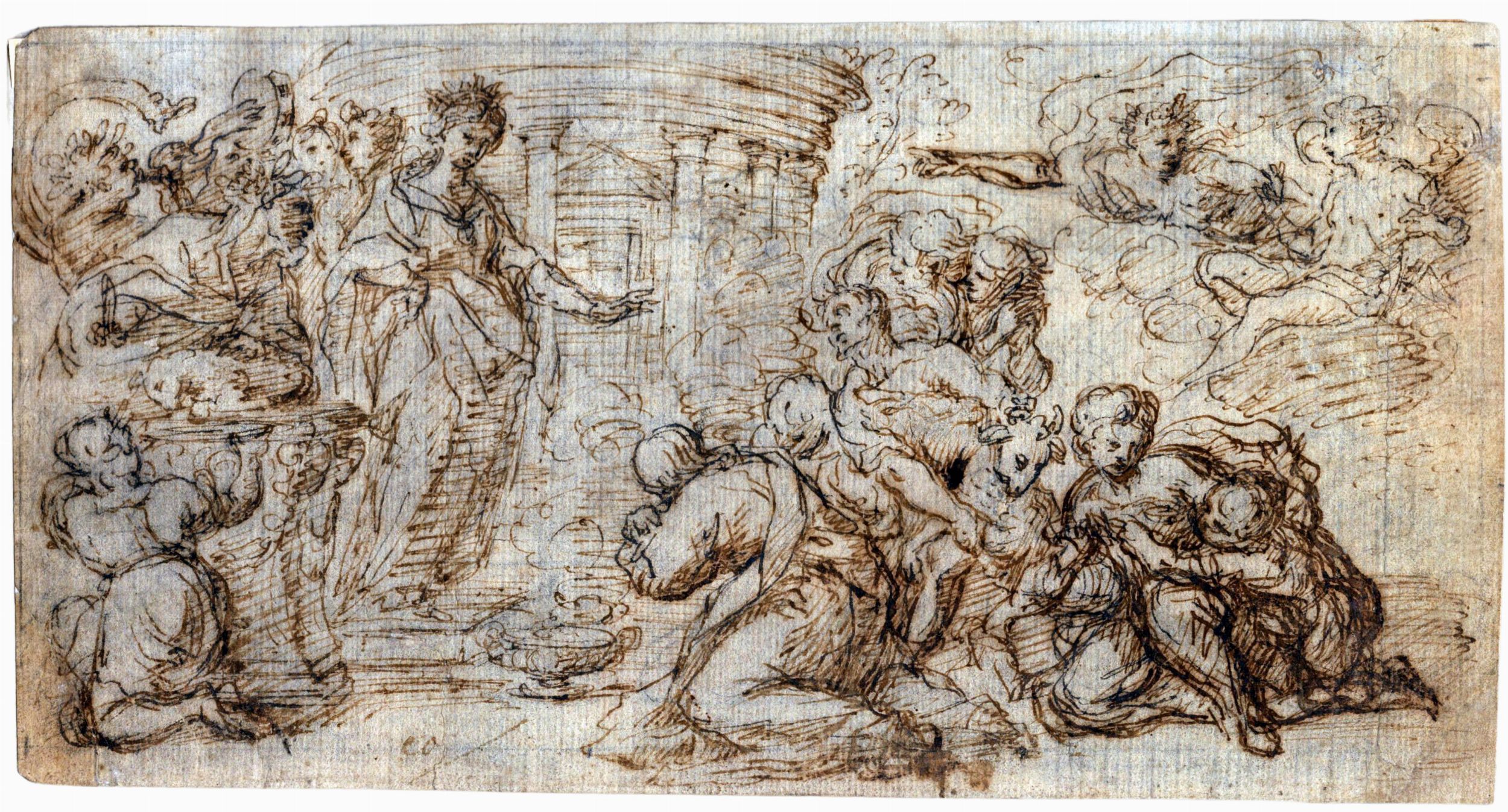 scuola romana del XVII secolo Inchiostro e tracce di matita su carta vergata con filigrana, 146 x 279 mm.