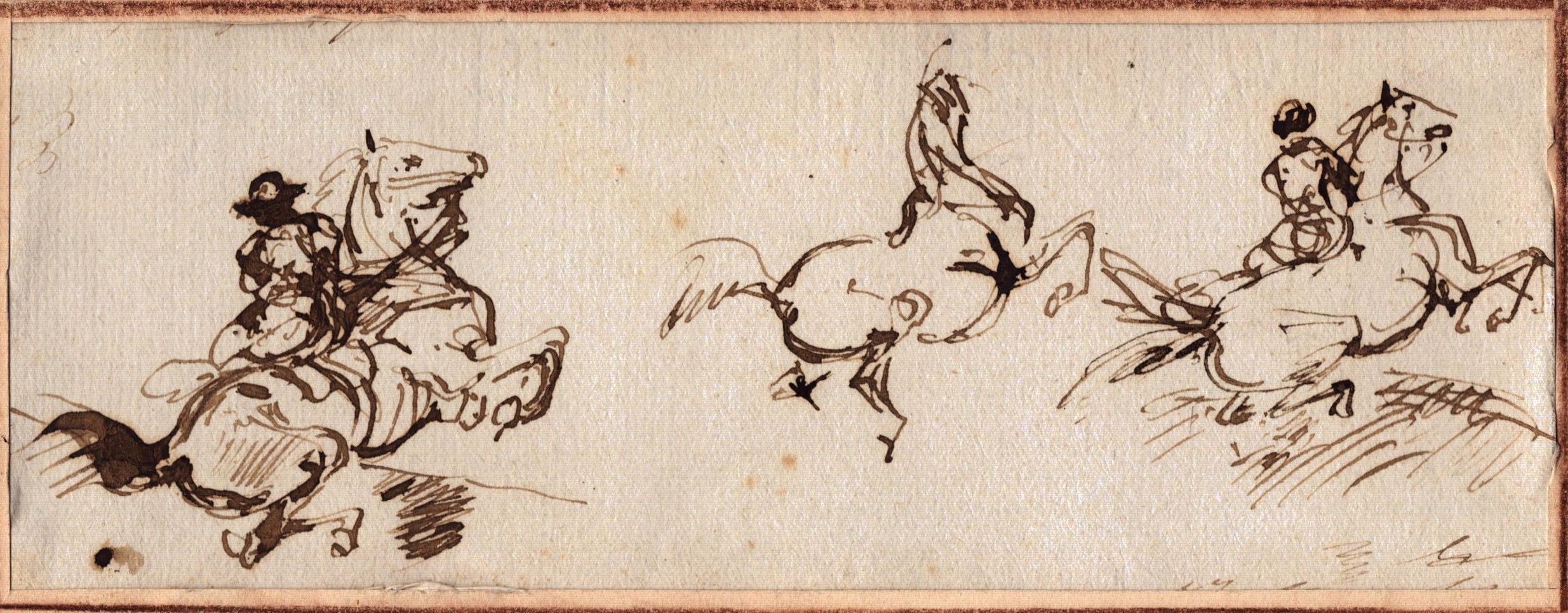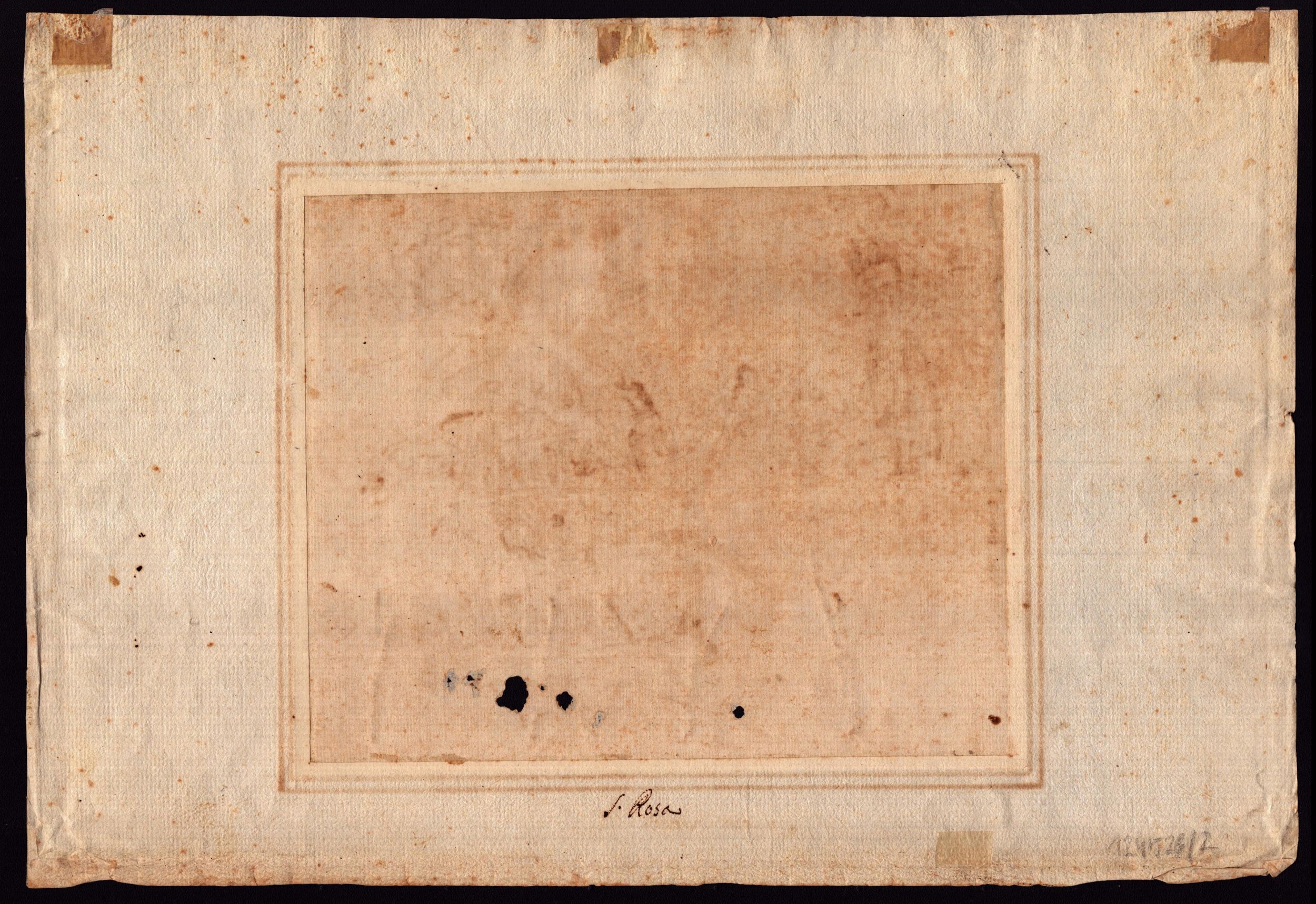 artista centro-italiano del XVIII secolo Inchiostro bruno e penna su carta vergata, 200 x 245 mm (foglio), 285 x 420 mm (con passe-partout). Al verso una nota manoscritta 'S. Rosa' Incluso: Schizzo di cavalli in corsa Inchiostro su carta vergata moderna, 78 x 210 mm