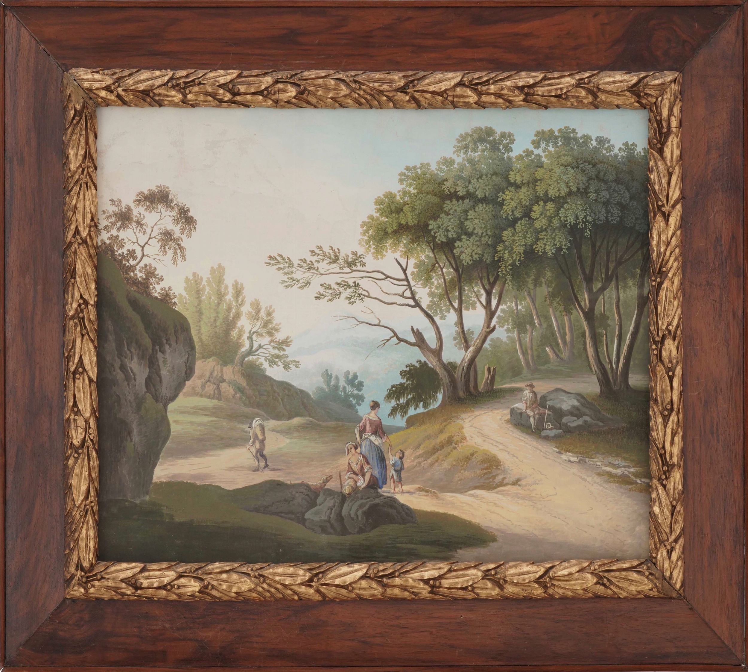 Scuola del XIX secolo Paesaggio con figure di contadini