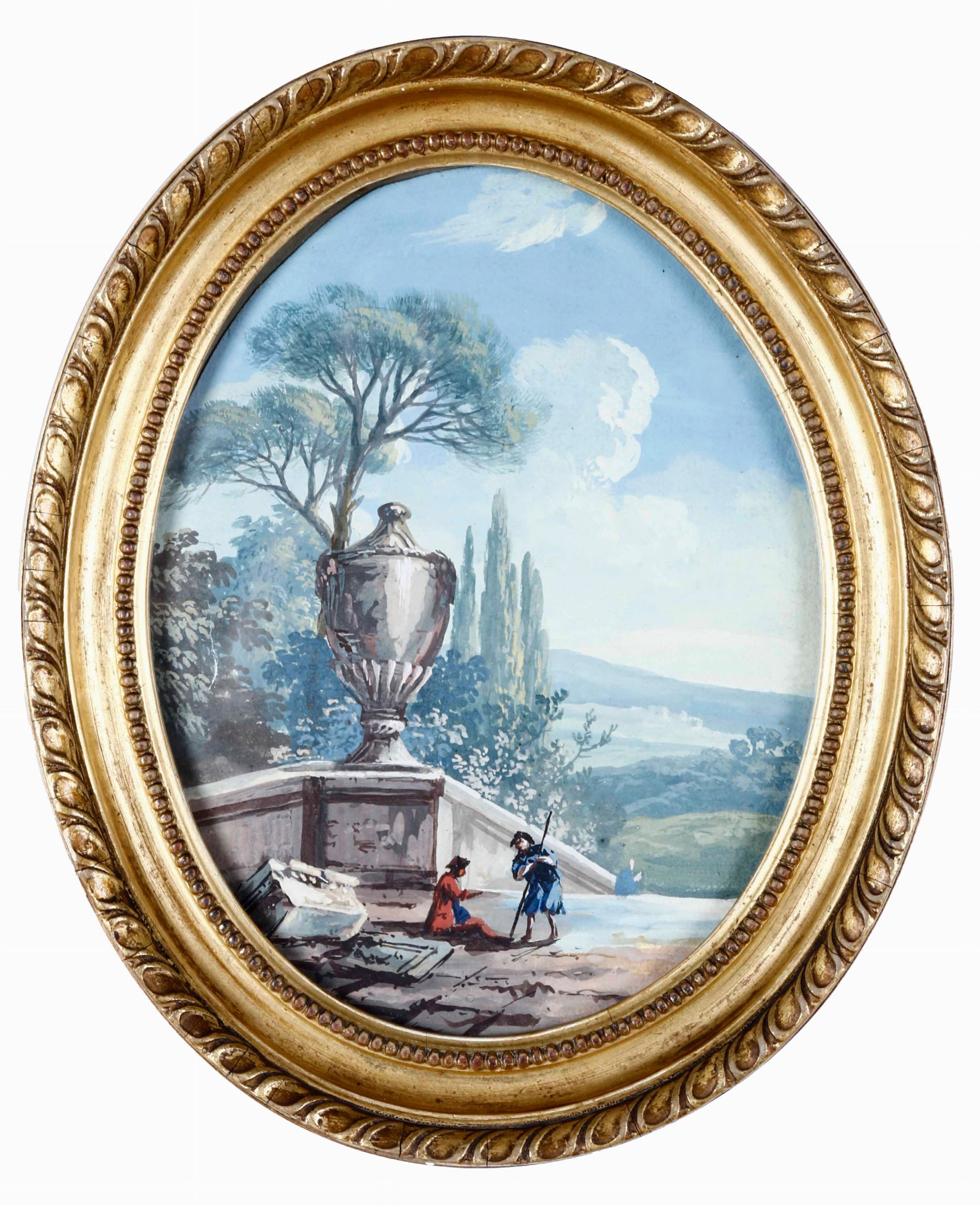 Scuola italiana del XVIII secolo Paesaggio con architetture e figure