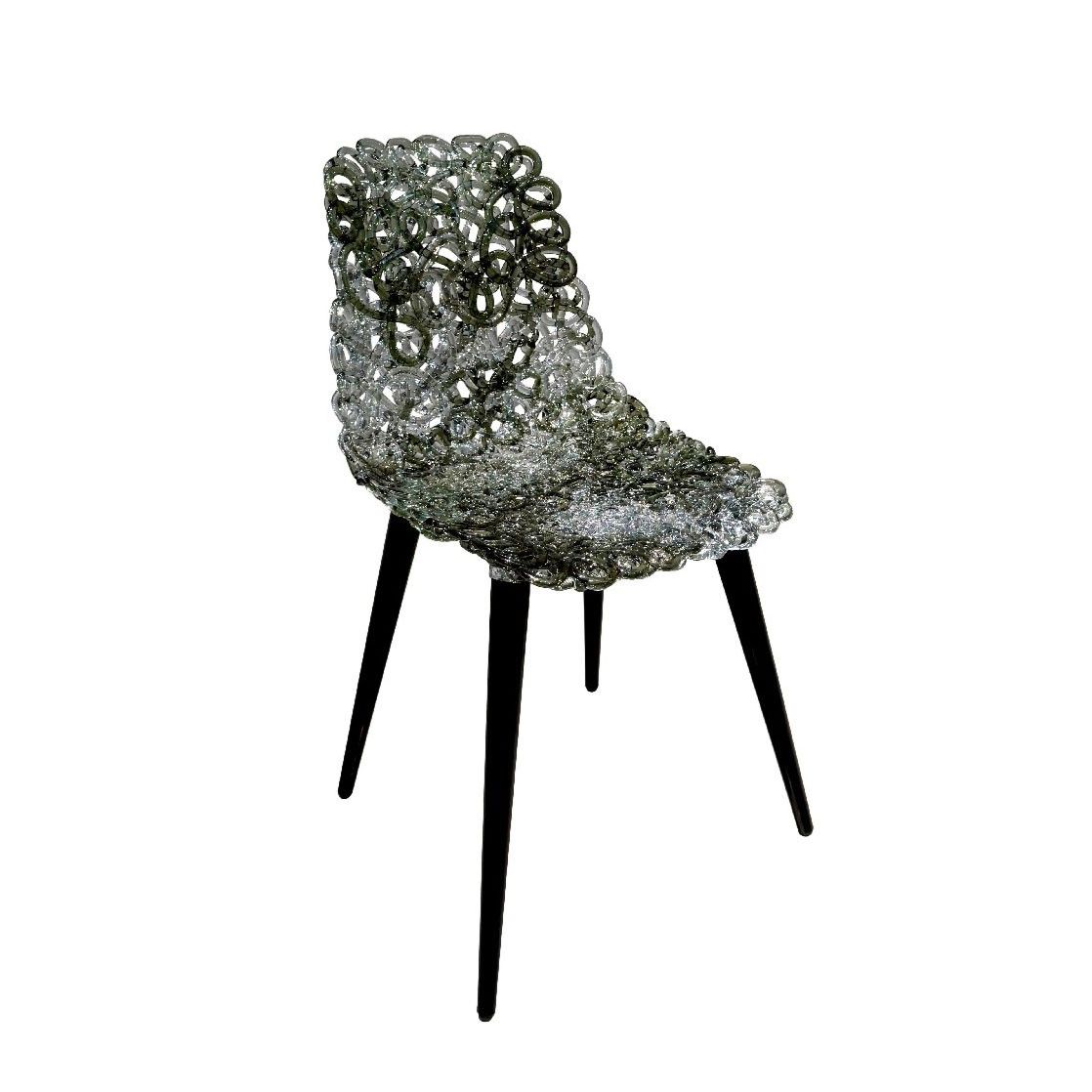 2014 sedia in policarbonato e gambe in legno verniciate nero semilucido, eseguito a mano. Produzione Edra Giochi di luce e trasparenze per questa sedia che ha seduta e schienale formati da un unico ricamo prezioso di estruso di policarbonato, eseguito a mano. Poggia su quattro gambe di legno verniciate di nero semilucido. Ogni sedia della collezione di Jacopo Foggini è una scultura diversa dalle altre. Altezza dello schienale, larghezza, forma, “polveri e imperfezioni”, colore e distribuzione della materia, modellata a mano, rendono ogni esemplare prezioso e unico. Ogni sedia ha un suo carattere, elegante e individuale. Gina in verde salvia ha accompagnato gli atleti di Casa Italia a Tokyo 2020 diventando parte del racconto olimpico, che non è solo competizione sportiva, ma simbolo di eccellenza e di impegno. Valori che Edra condivide attraverso la partnership con il CONI. Le sedie disegnate da Jacopo Foggini, formate da un unico ricamo prezioso di policarbonato eseguito a mano e in colori speciali ispirati alla natura, hanno illuminato i tavoli del ristorante della The Kihinkan – Takanawa Manor House, la casa degli azzurri in Giappone, con le loro trasparenze e giochi di luce e in armonia con l’eleganza e la storia della dimora. La scelta di donare Gina porta con sé la memoria di quell’esperienza, il legame con chi ha gareggiato per superare i propri limiti, la bellezza del gioco e del gesto, olimpico e artistico. Giochi di luce e trasparenze per questa sedia che ha seduta e schienale formati da un unico filo che forma un ricamo prezioso di policarbonato, tutto eseguito a mano.Ogni pezzo è unico e poggia su quattro gambe di legno verniciate di nero semilucido, rimovibili.Preziosa ed elegante, si inserisce in ambienti contemporanei e antichi con disinvoltura.