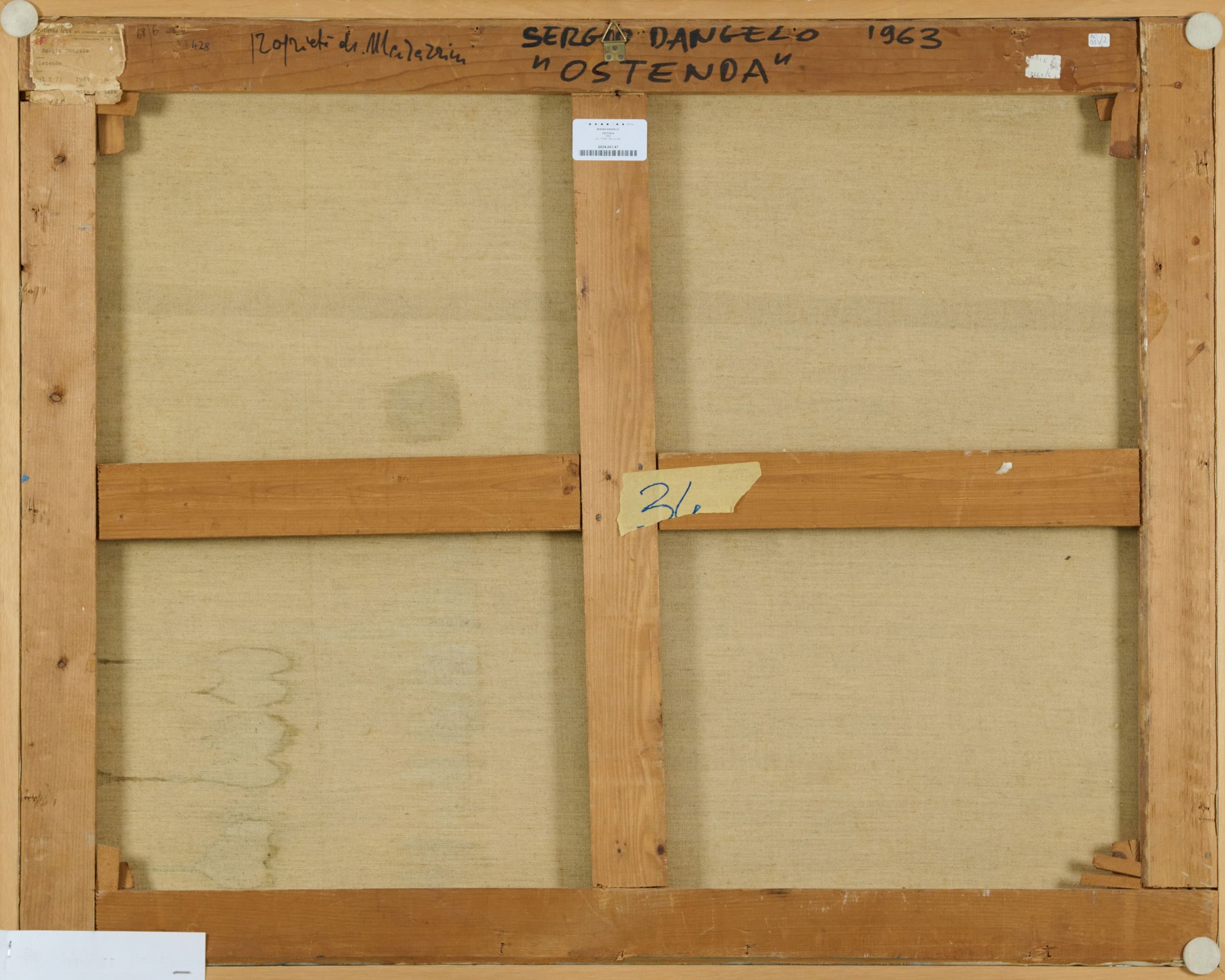 1963 Firma in basso al centro. Sul verso: firma, data e titolo. Etichetta e timbro 'Galleria Levi', Milano, con descrizione.