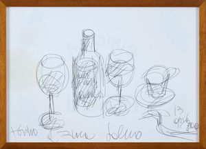 Biro su carta, cm. 30x41 2013 Firma e data in basso a destra, dedica in basso a sinistra.