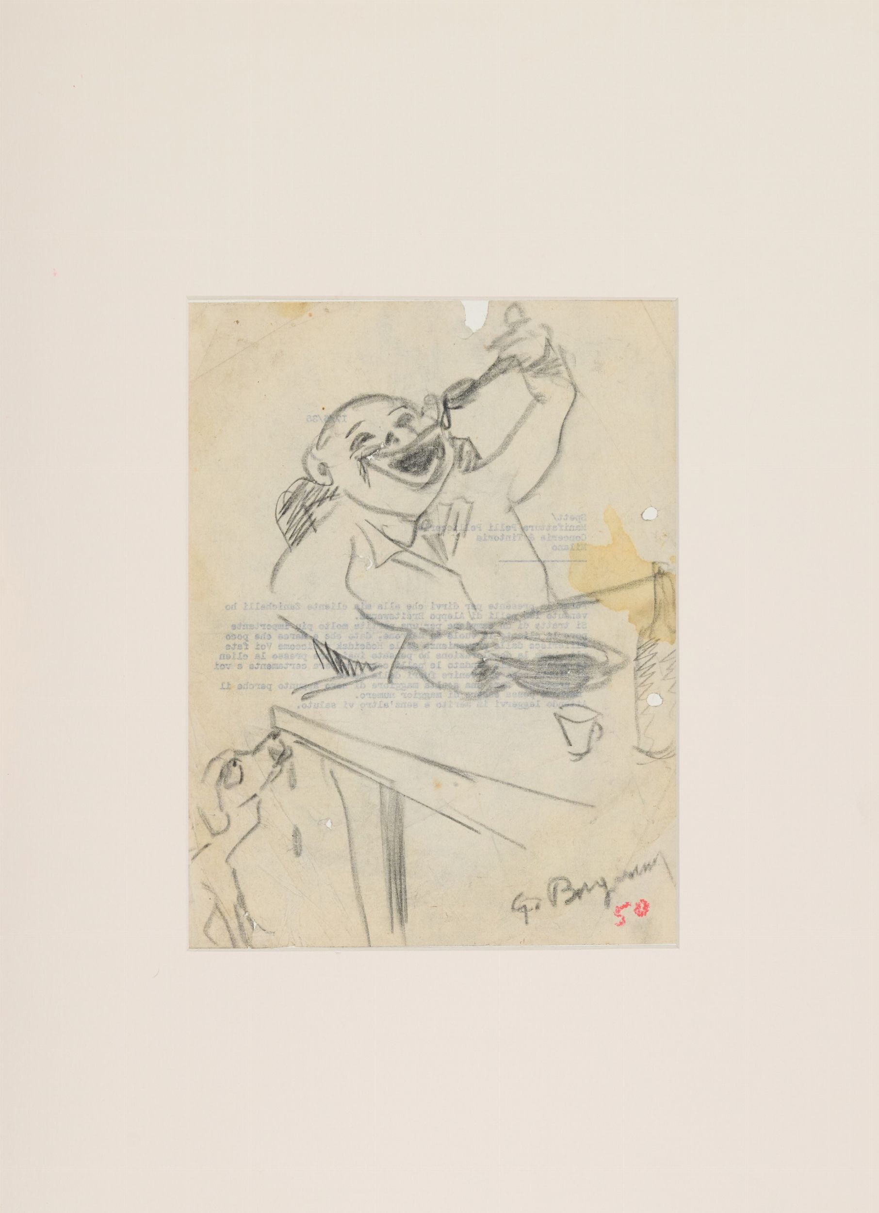 - 'Senza titolo': grafite su carta applicata su cartoncino di cm. 28x23, firma e data '50 in basso a destra. La carta presenta difetti. - 'Senza titolo': china su carta di cm. 14x20, firma e data '60 in basso a sinistra. La carta presenta fioriture. - 'Figure': china su carta applicata su cartoncino di cm. 23x17,5, firma e data '38 in basso a sinistra. - 'Figure: grafite su cartoncino di cm. 18x27, firma e data '43 in basso a sinsitra. La carta presenta fioriture.