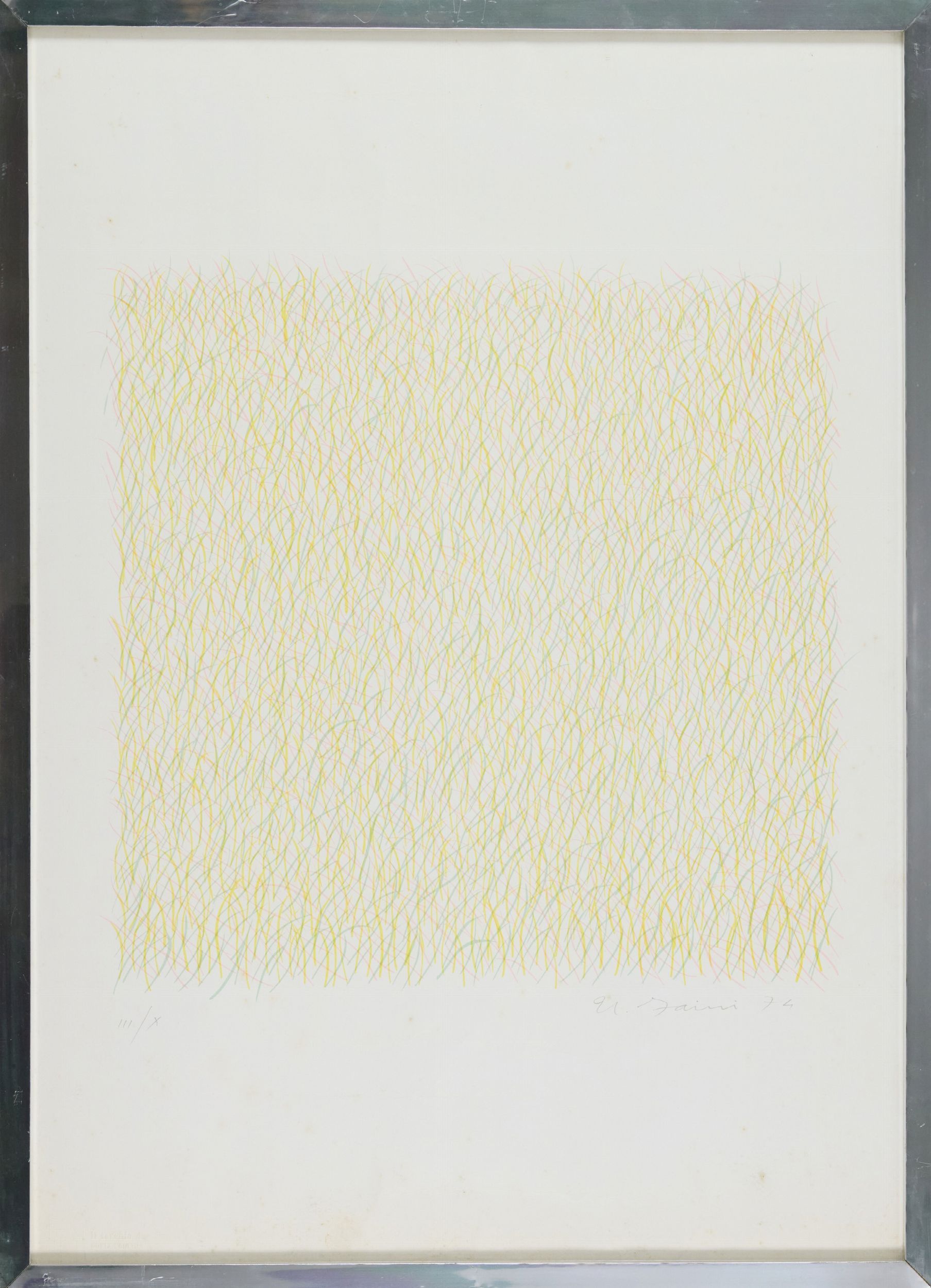1974 Firma e data in basso a destra, tiratura in basso a sinistra. Sul verso: certificato di garanzia 'Il Torchio di Porta Roma', con descrizione. La carta presenta lievi imperfezioni.
