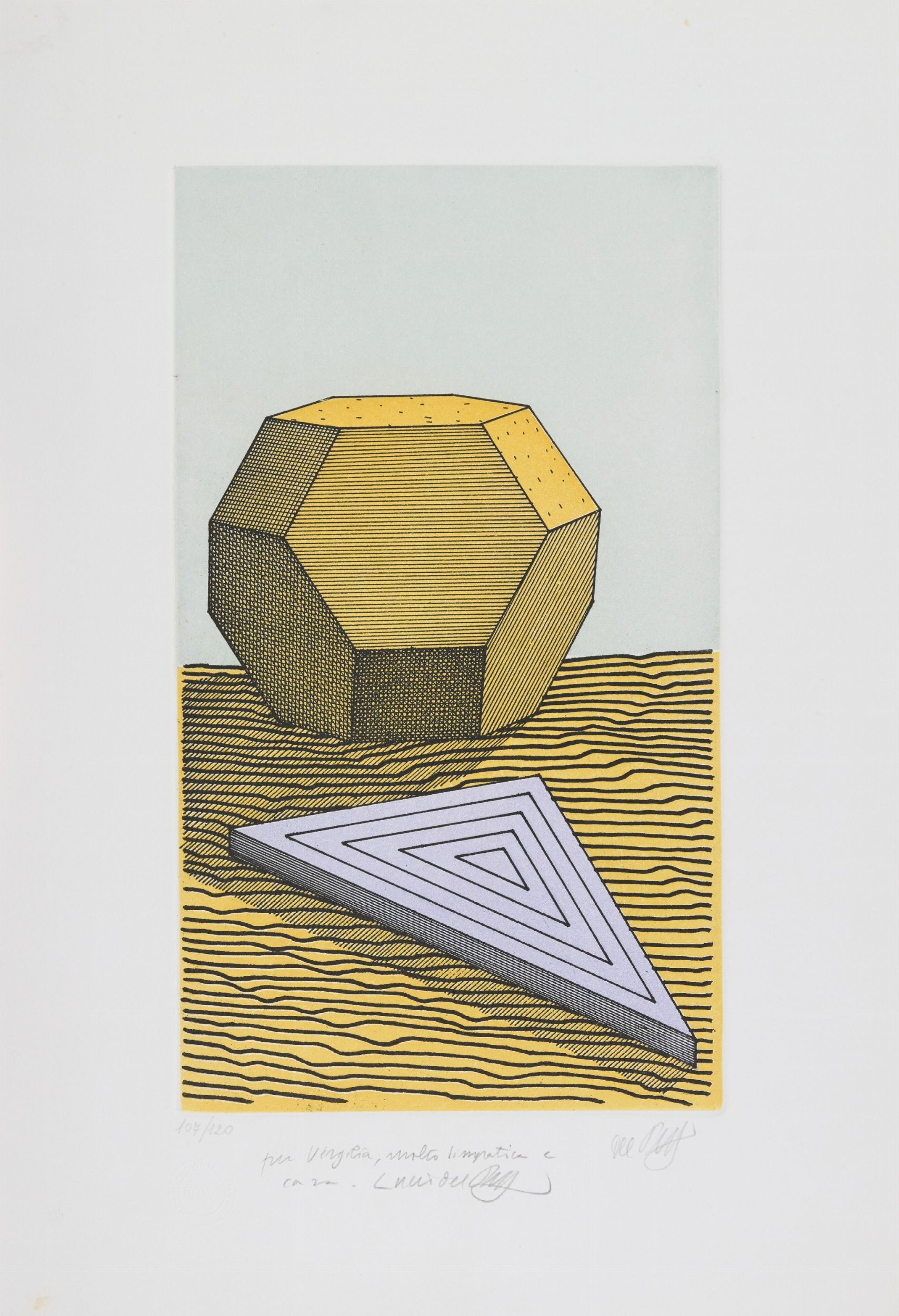Firma in basso a destra, tiratura e timbro a secco Grafica D'arte Lombardi, Roma, in basso a sinistra e dedica a persona in basso al centro.