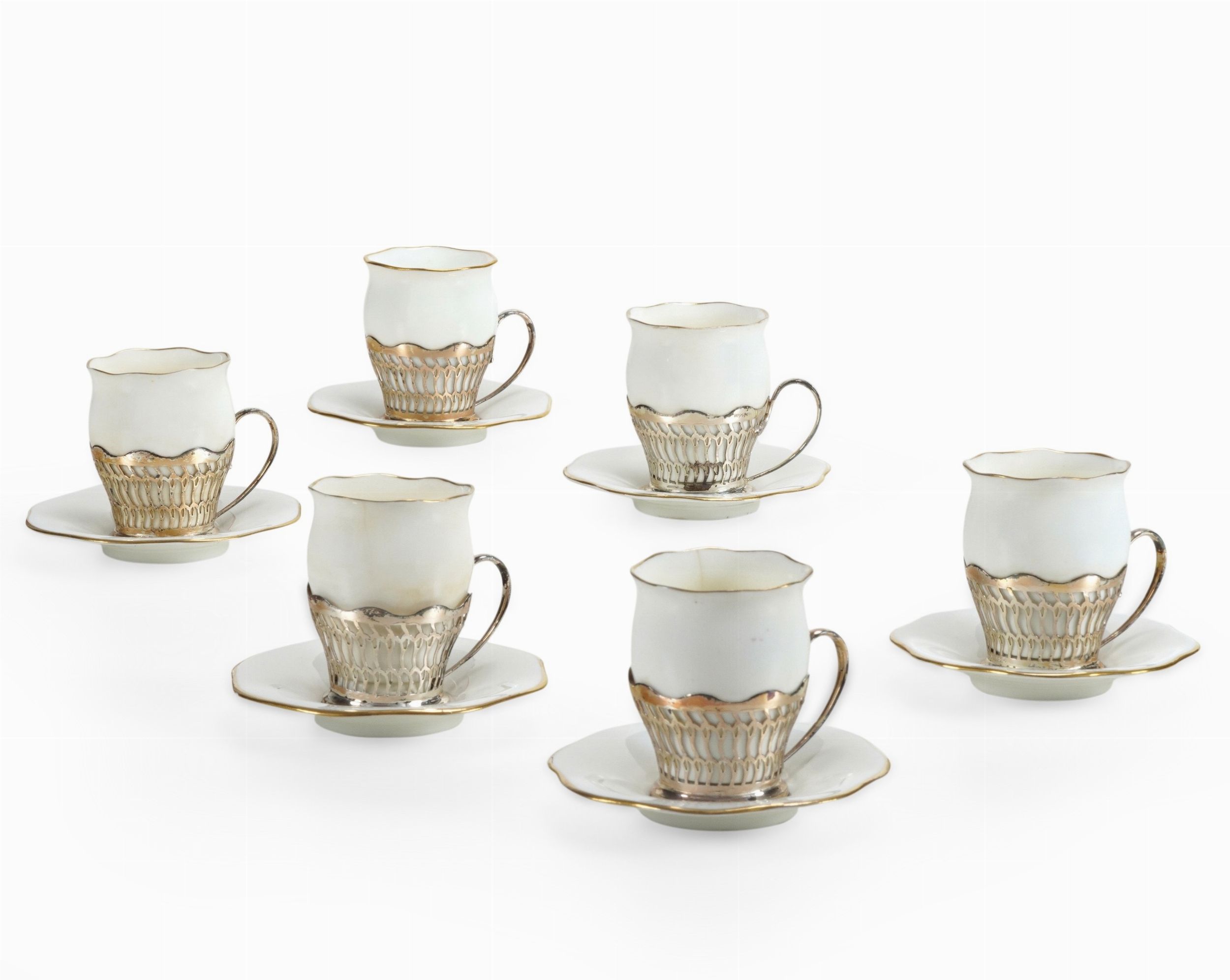 Sei piccole tazze con piattino.