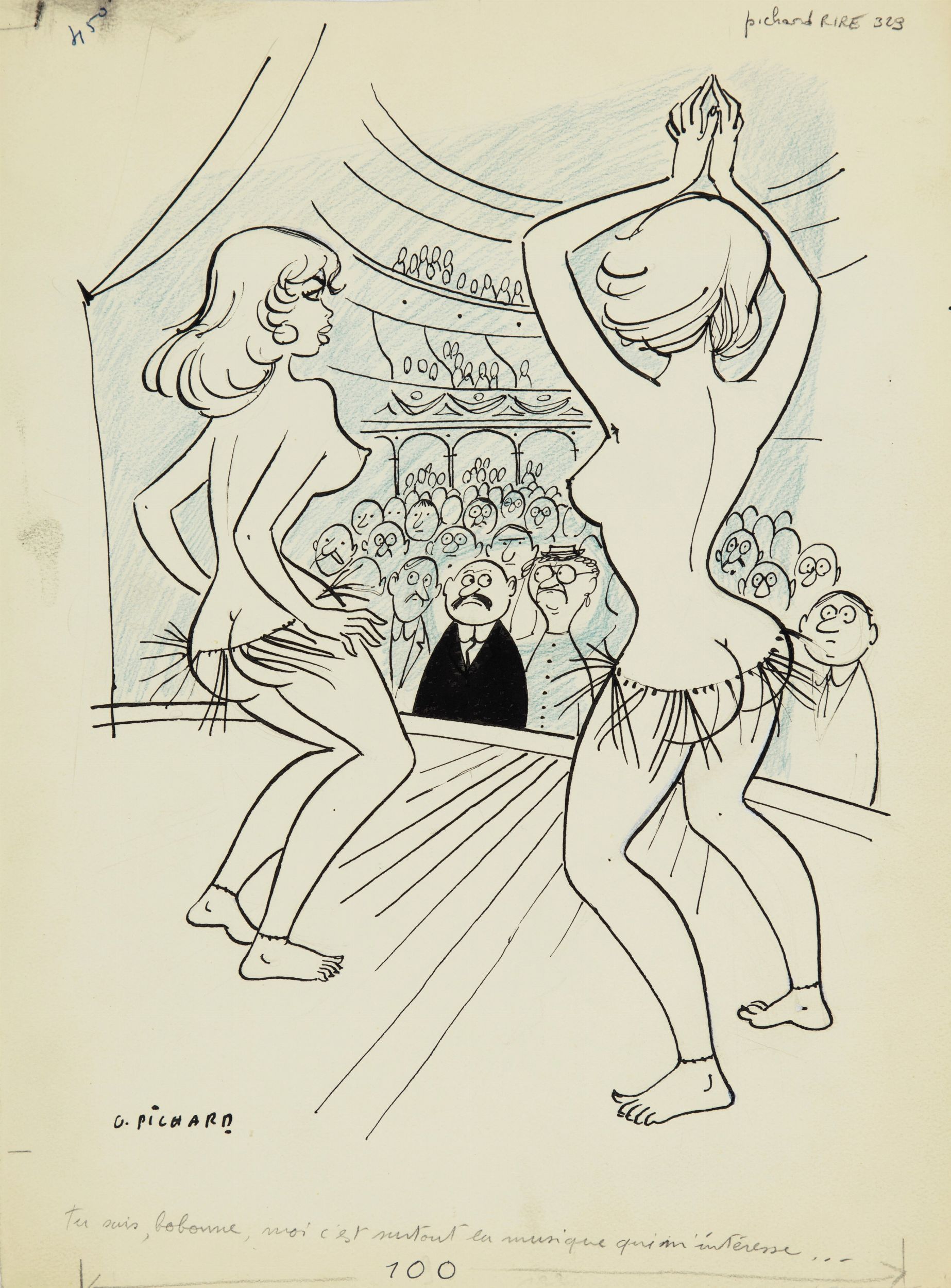 anni 50 Illustrazione originale realizzata da Pichard alla fine degli anni '50 per il giornale satirico francese Le Rire. Firmata.