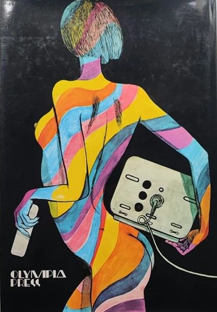 matita, china e acquerello su cartoncino, 76,5 x 36,5 cm 1988 Originale di copertina (e quarta di copertina) realizzato da Crepax per 'Anita in diretta', volume pubblicato dalla Olympia Press nel 1988. Un capolavoro del maestro milanese, un'immagine che ha segnato un'epoca: Crepax torna a raccontare l'ossessione di Anita per il televisore ma questa volta parliamo di un TV color e dell'intromissione di quell'oggetto demoniaco che è il telecomando, adatto a consentire la schizofrenica e maniacale attività dello zapping. Un pezzo da museo considerando anche l‘estrema rarità di opere a colori di Crepax e il grande formato del tutto inusuale. Piccolo strappo al margine inferiore.